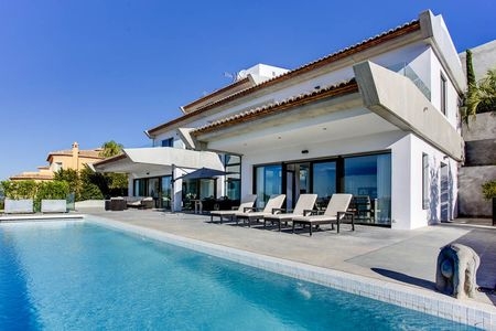 Beautiful modern 5 bedroom and 4 bathroom Villa Located Close to the Town No expence has been spared in the construction of this South facing property with specatular Panoramic and sea Views. Distributed over 2 floors and with a guest apartment if the stairs become too much there is a lift to make life easier. Equipped with Underfloor Heating Air Conditioning Automated Entrance and Double Glazing.