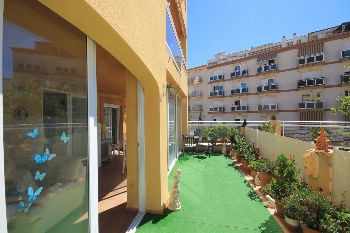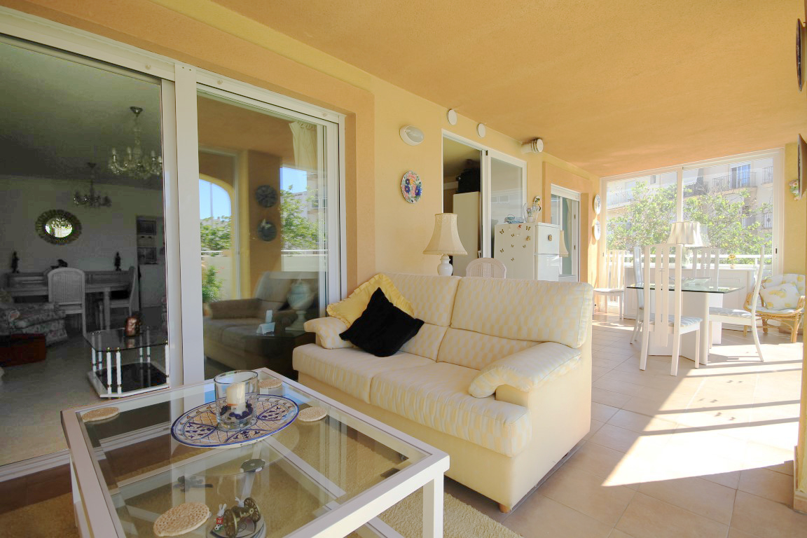 For Sale: Situated on the edge of Javeas old town walking distance to the port and the Historical center this south facing 3 bedroom apartment is on a complex with a communal pool. The large glazed in covered terrace is accessed from the lounge area kitchen and master suite and is large enough to have both a dining and secondary lounge area while there is also a private uncovered terrace. The apartment has a private underground parking place and storage area adjacent to the apartment. This property is ideal for all year round living or would make the perfect holiday home or rental investment due to the fact there are not many complexes close to the old town and port.