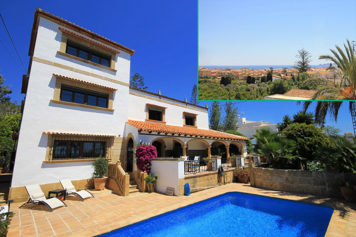 For Sale: The Villa Selina sits on the outskirts of the historical centre of Java on a flat south facing plot with sea views from all levels. Originally a well renowned restaurant the building was lovingly restored with great attention to detail retaining many of the orignal features such as the beautiful Manises tiles from Valencia and the Original Javea sourced Tosca stone. On the ground floor there is a vast L Shaped Naya which leads to the lawned garden and private pool area. Upon Entering the property you can immediately appreciate the love care and workmanship that has gone into the restoration of this charming building. There is a large lounge bedecked with Tosca arches and fireplace this leads to one of two smaller lounge areas that can be used as a study and or another lounge area. The modern kitchen with Corian work surface features a dining area which then leads to an enchanting exterior area where the wisteria and Jasmine covered pergola offer shade for those hot summer days. On the first floor there is a third living area which entertains the master suite with dressing room plus a further two guest bedrooms and guest bathroom. On the second floor there is another double bedroom with a vast roof terrace with stunning views across Javea to the sea here there is good potential to develop if so required. This unique property has to be seen to be truly appreciated it is the perfect holiday or permanent home for a couple or family who recognize the properties history and want to be walking distance to both the town and the sea.