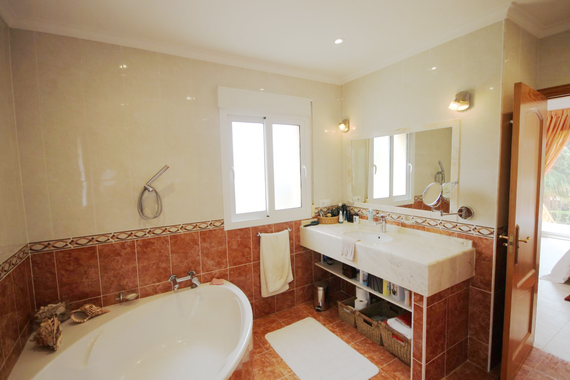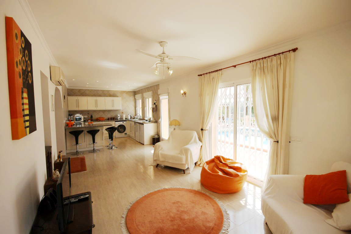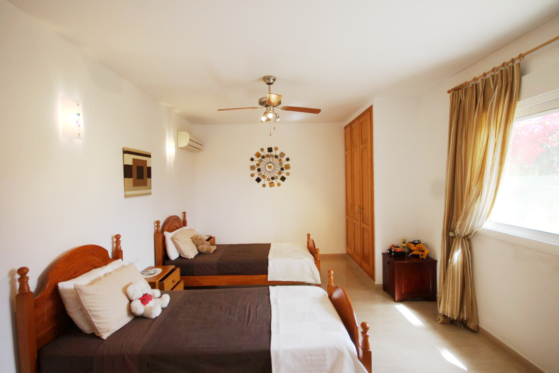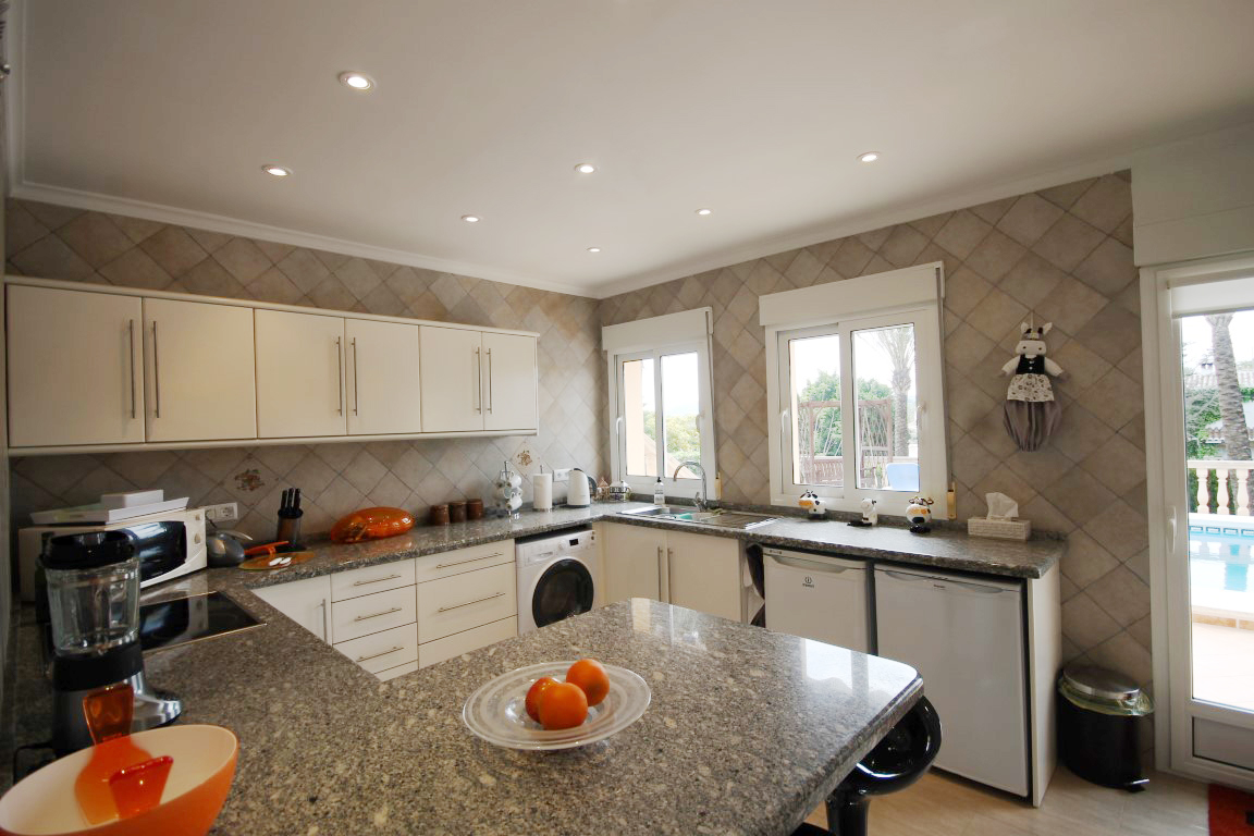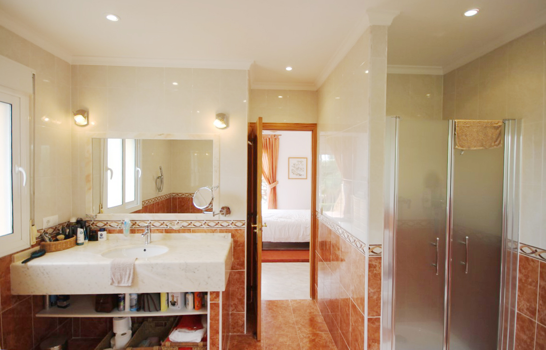 For Sale: Modern property built in a traditional style with sea views and easy access on foot to Jveas Arenal beach and amenities. This lovingly designed and immaculately maintained family villa is comfortably distributed over two floors. The upper level comprises entrance hall accessed via a front porch open plan living and dining space with open kitchen area and modern design breakfast bar plus fully integrated appliances. The living room leads onto the large L shaped naya used as a spacious dining terrace which also benefits from lovely views over the Mediterranean sea. Also on this level is a double bedroom which is currently used as an office a further double bedroom with built in wardrobes and en suite shower room which also serves as a guest WC plus the spacious master suite with huge en suite bathroom complete with his n her sinks full bath tub and separate shower complete with double wardrobes and access to the terrace and gardens. Whilst the property feels like a family home the lower level is independent and could be made completely separate as it benefits from its own entrance gates. It comprises open plan living/dining/kitchen with breakfast bar and direct access out to the 8x4m swimming pool and spacious pool terrace two double bedrooms each with plenty of wardrobes and one with en suite bathroom complete with bathtub and separate shower and the other with an Italian style walk in shower. The exterior of the property is equally as immaculate offering low maintenance garden plenty of shaded and open terraces 2 double gated entrances car port and a charming Balinese style covered dining terrace. The highest of comforts were thought of throughout the design process to offer: hot and cold air conditioning via conducts to the upper level split hot and cold air conditioning units in the lower level with all machinery tucked away in the machine room so as not to cause noise or rusty machines a separate storage room with workshop area plus an above ground pool room. There is a large satellite dish for international TV plus internet and telephone connection. All this located within 2km from the heart of Jveas bustling Arenal set on a residential road with easy access.
