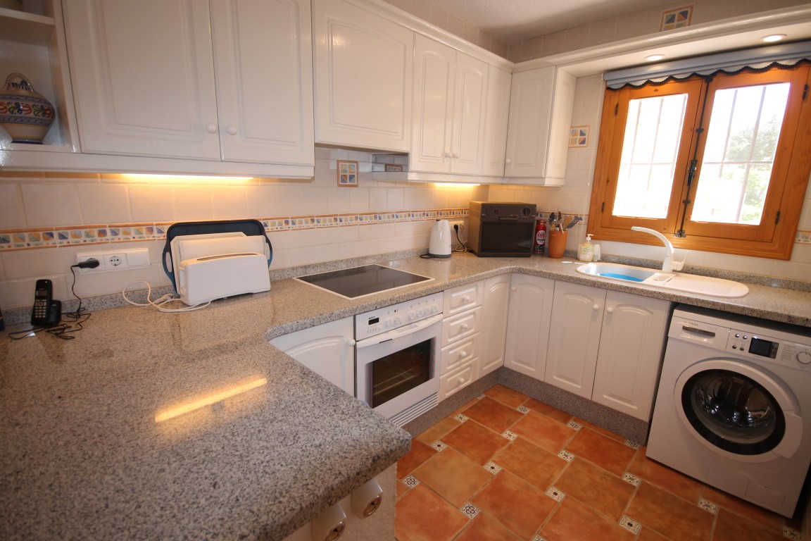 For Sale: A superbly presented villa enjoying a private and tranquil location and some of the best panormaic valley views around. Entering the plot via electric gates there is ample off road parking space leading to garage and carport parking. An impressive staircase leads to the naya and covered terrace from where you can enjoy the situation of the villa. The main living area comprises L shape living/dining room with woodburner and traditional features such as beam and barrel ceilings. The kitchen which has been fitted with castellion style cabintry and leads out onto a utility terrace. There are 3 double bedrooms all with fitted wardrobes 2 bathrooms one of which is en suite to the master. There is an independent apartment on the lower level distributed with fitted kitchen living/dining room 2 double bedrooms 2 bathrooms both en suite and a snooker room. The villa boasts a summer kitchen area and large terrace with various corners throughout the garden to enjoy the views. The gardens have been laid laid to gravel and heavily landscaped with indigenous plants and trees including citurs trees and palms all irrigated with an automatic system. A truly impressive property backing onto green zone land and situated at the end of a cul de sac. With the ample storage and space the villa provides is ideal as an all year round residence or alternatively a very handsome holiday home.