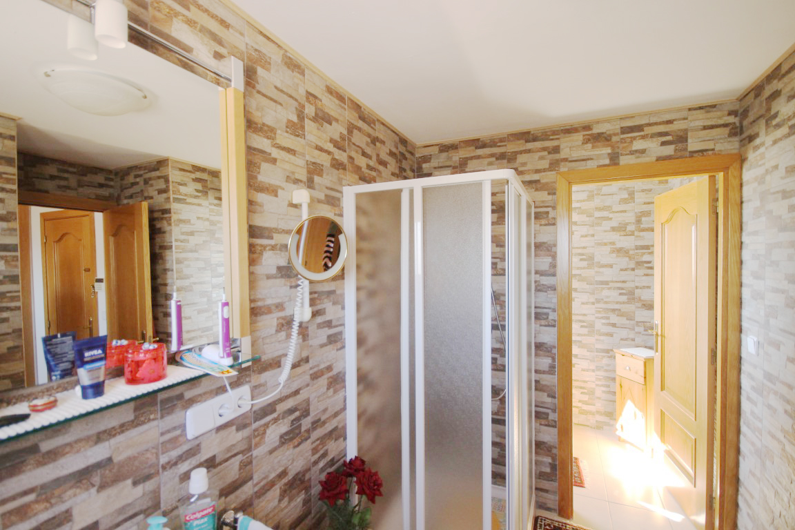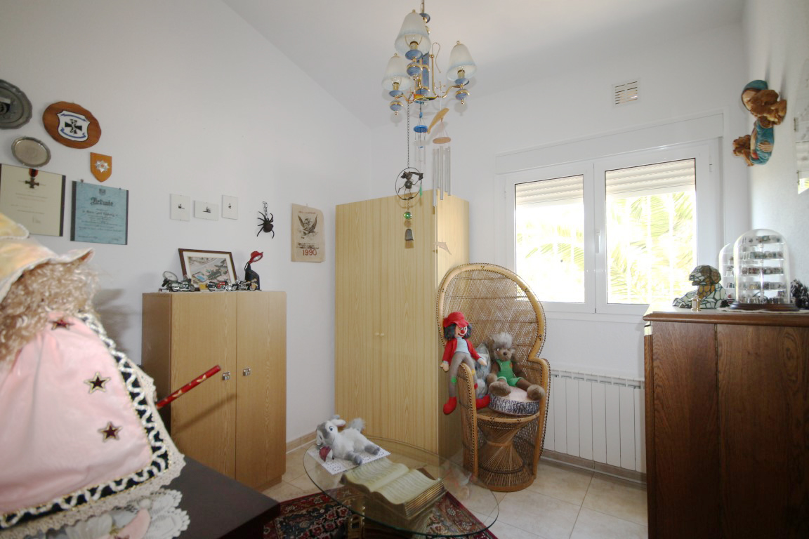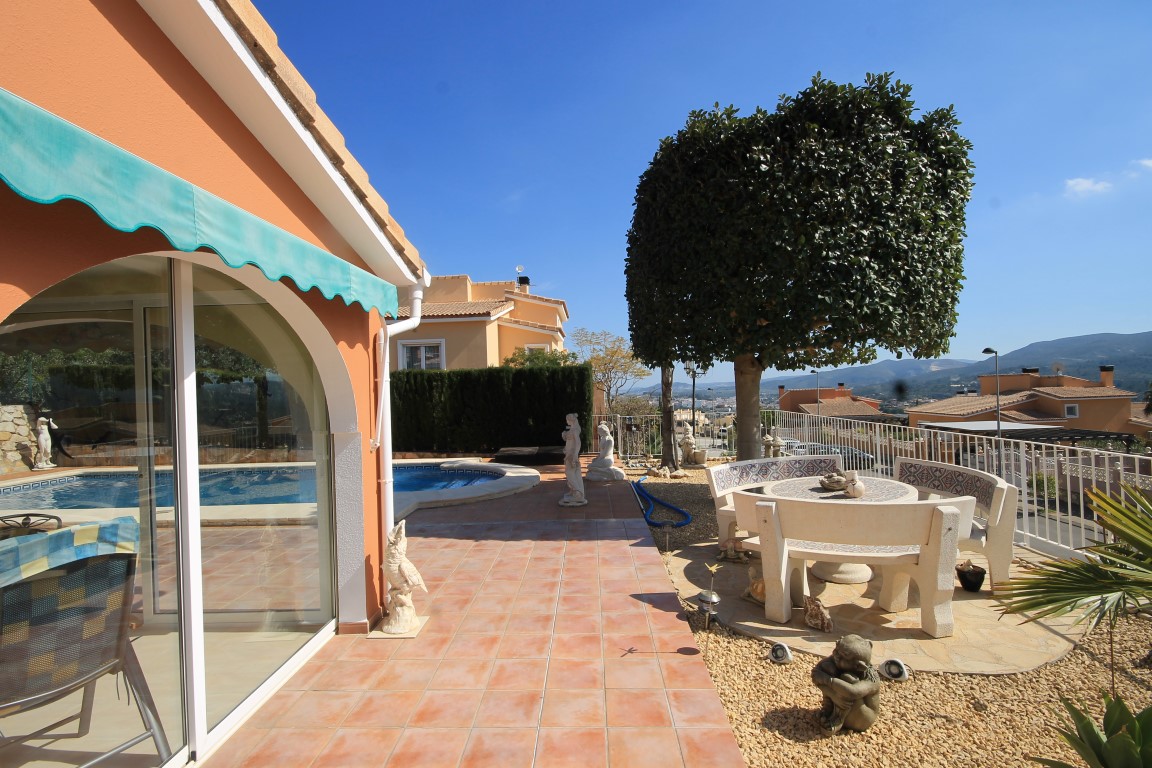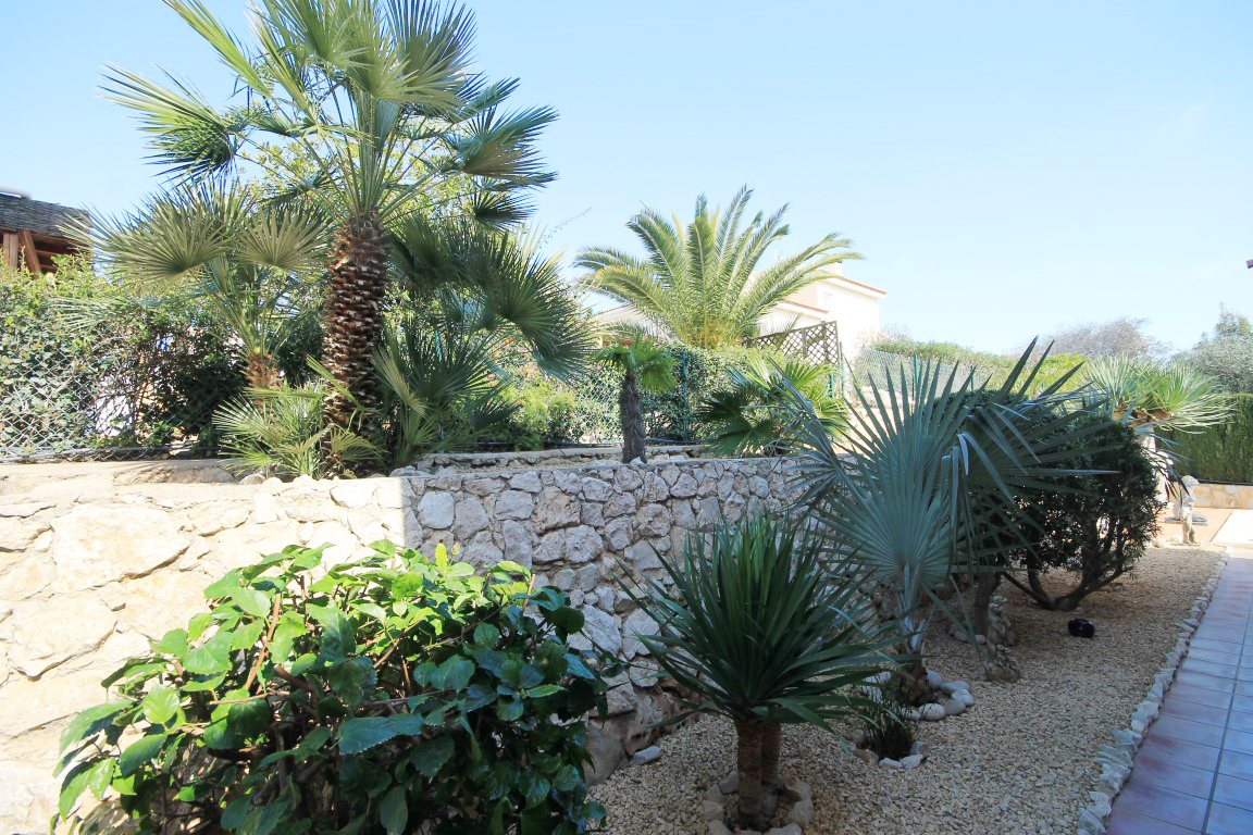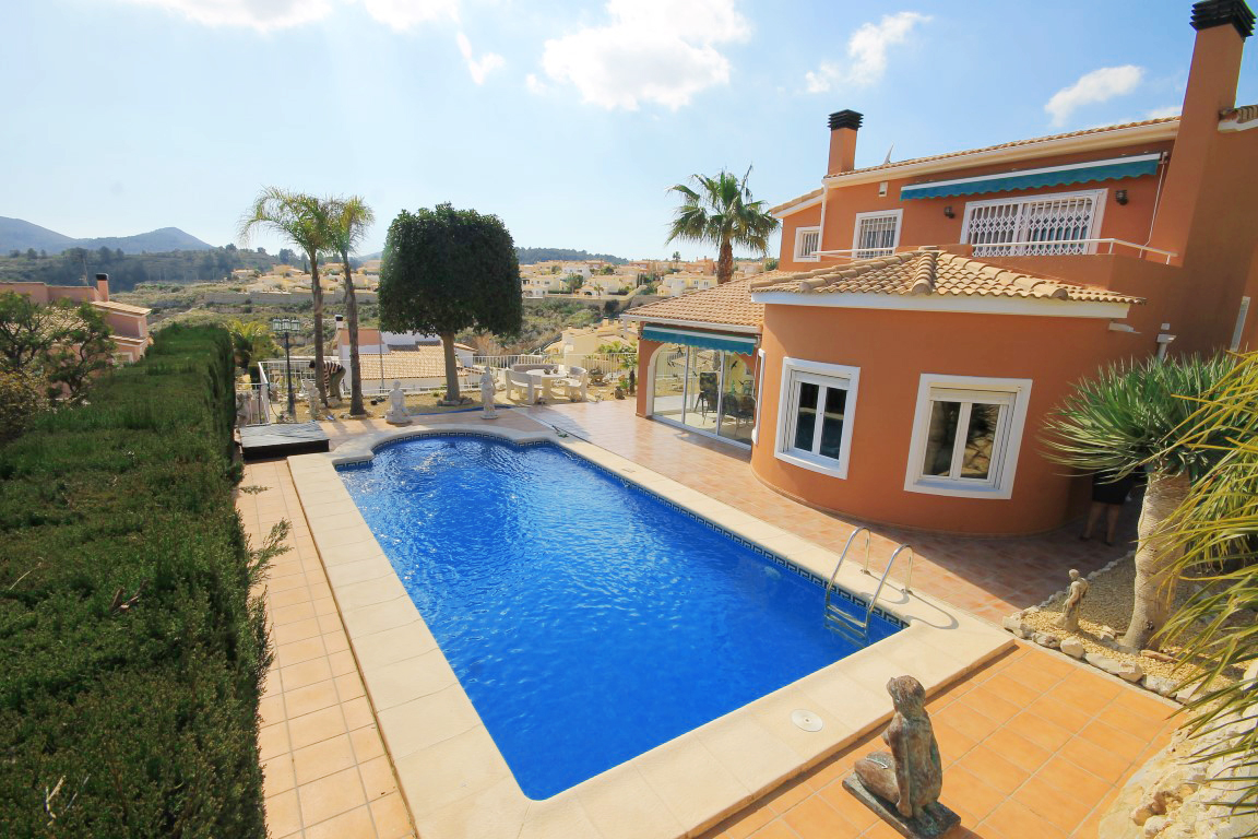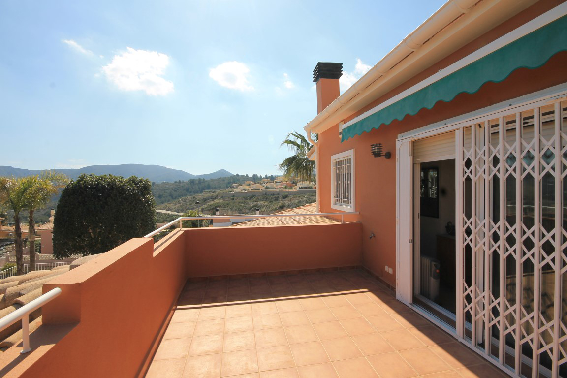 For Sale: Modern classical style villa set in an elevated position in the residential area of Gata Residential. This property is accessed via a private entrance set back 20 steps from the main road to offer a totally flat and private plot. The villa itself comprises an entrance hall living/dining room with cast iron fireplace and large windows out onto the gardens glazed naya terrace with awning which overlooks the pool fully equipped kitchen with separate utility room storage under the stairs 2 double bedrooms which share a family bathroom with separate WC and the spacious master suite on the upper level with dressing room renovated shower room with separate WC and private breakfast terrace. There is also pre installation for a fireplace in the master bedroom. The manicured and established gardens are low maintenance with 3 automatic watering systems for the many local plants and trees. There are various dining and relaxing areas and an 8x4m private swimming pool with views looking over the countryside and out towards the Mediterranean sea and Jveas coastline. Extras include: private car port a huge under build storage area air conditioning in the master bedroom and living/dining room gas central heating throughout mosquito nets and shutters on windows and security features. The house has been incredibly well maintained and offers a comfortable home whether for year round living or as a holiday home.
