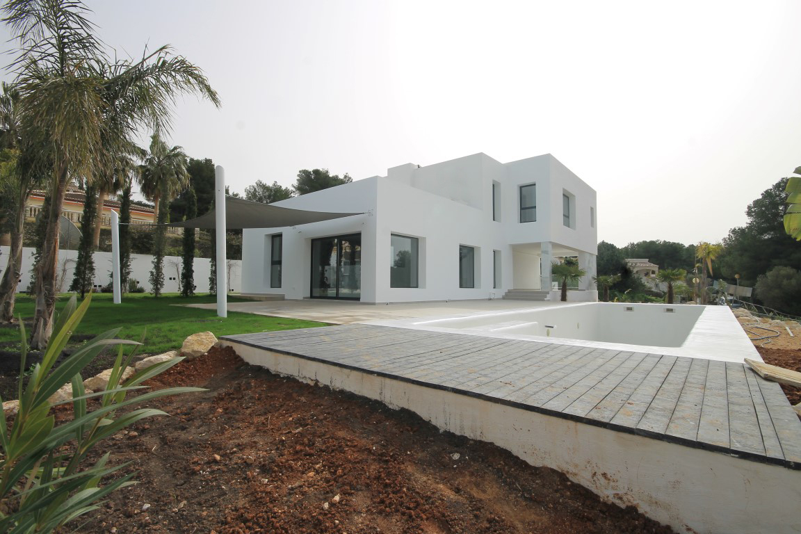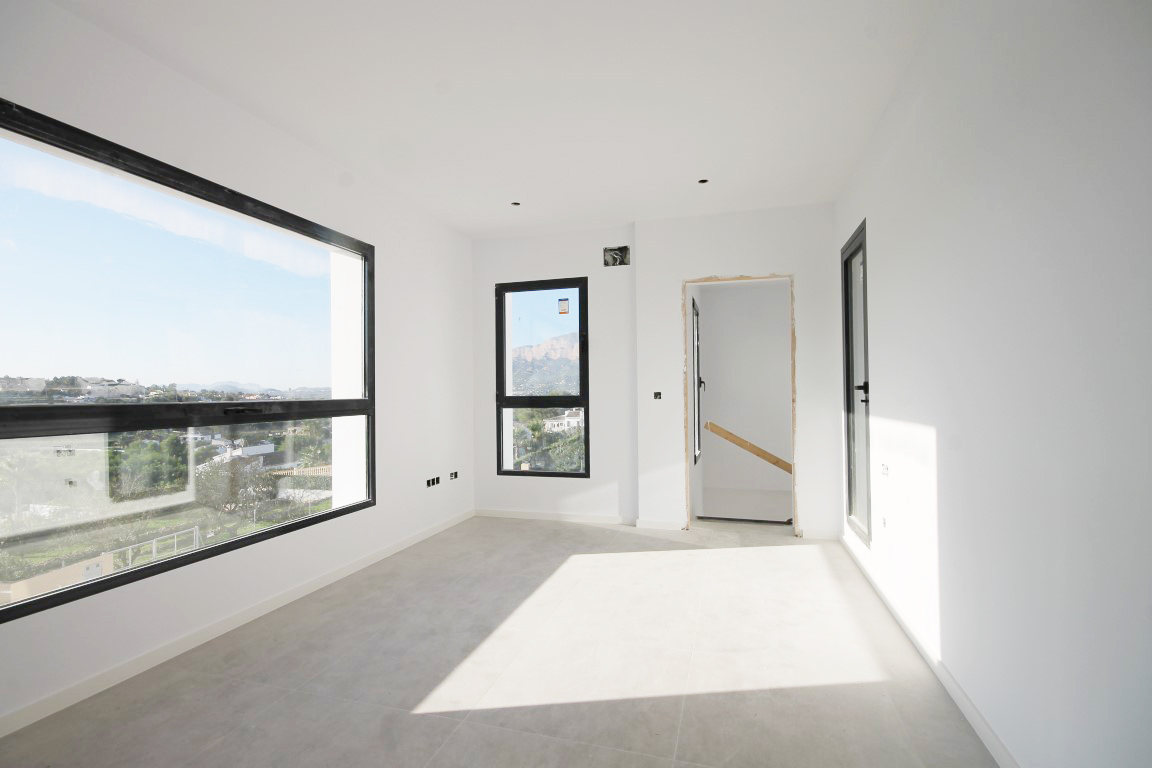 For Sale: Modern style new villa with fantastic views towards the Montg mountain and over the surrounding countryside.This property is built over 3 levels and comprises: 3 bedrooms 3 bathrooms 1 w.c. open plan living/dining room with kitchen naya garage and off road parking.South west facing. Finished in 2016. Extras include: Underfloor heating A/C and a 11x3.5m pool.