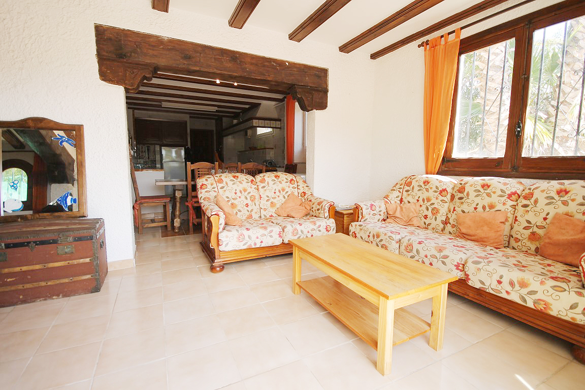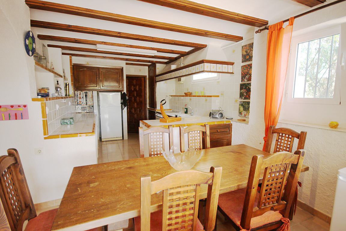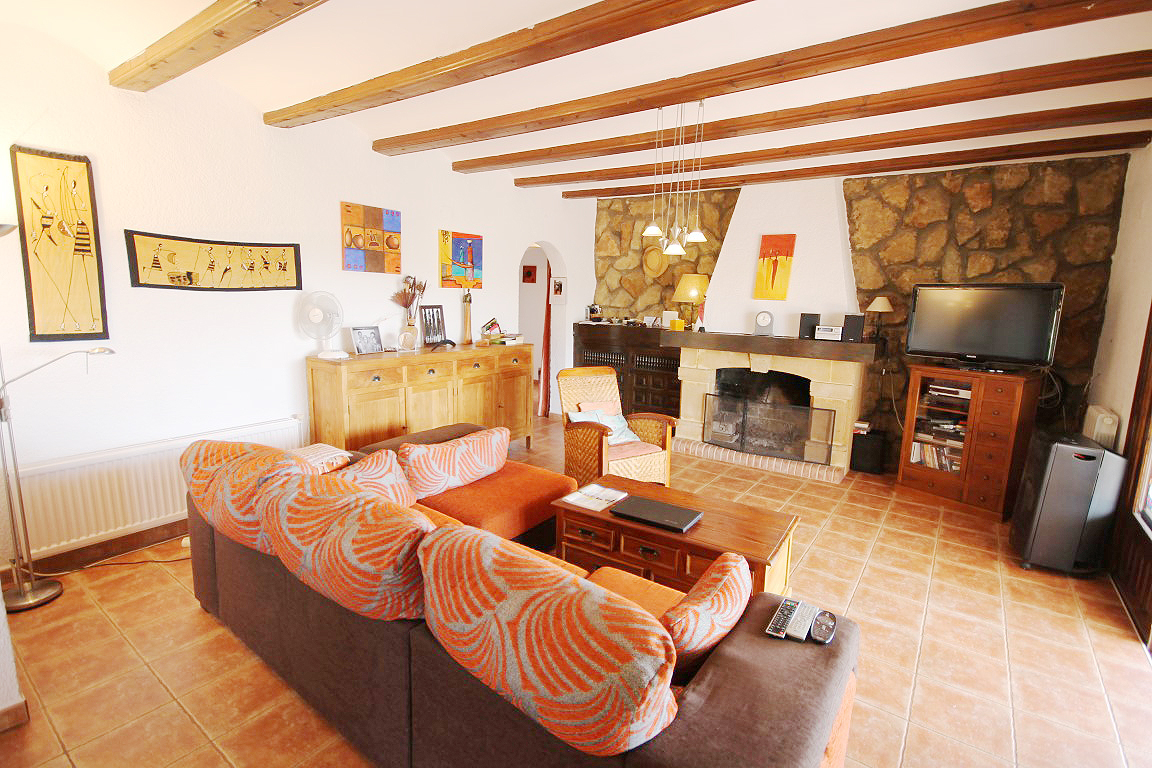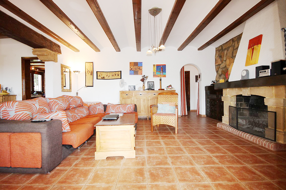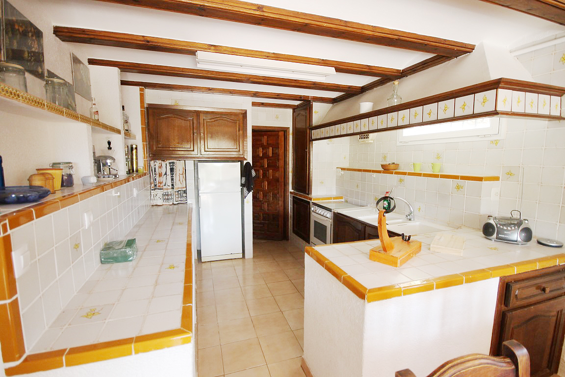 For Sale: Situated in a tranquil and established residential area close to the old town of Javea in the area of Montgo Castellans this 7 bedroom property boasts lovely open valley mountain and sea views. Being elevated and surrounded by privates villas and nature the villa enjoys a good level of privacy. Distributed over two levels independently while also being internally connected the main living area is on the upper floor with 3 bedrooms and a further 4 bedrooms in the lower apartment. The main living area possesses a living room/diner featuring traditional features such as tosca stone work and beamed ceilings while there is a large glazed veranda/naya with sea views. The lower floor apartment consists of an open plan lounge with kitchen plus four bedrooms and two bathrooms. The 10x5m pool with Riu Rau type veranda and summer kitchen offers complete privacy while there is a garage plus decent off road parking.