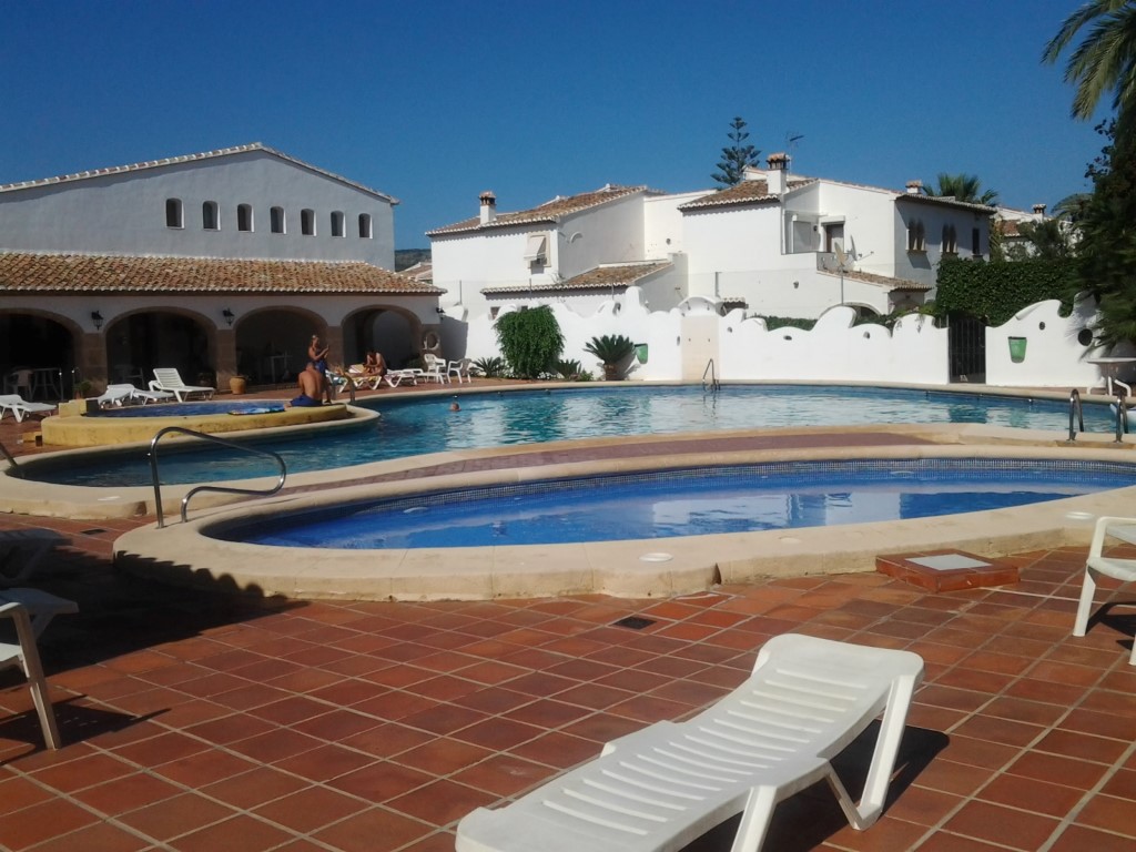For Sale: Traditional style bungalow just 100m from the beach and various restaurants and beach bars. Distributed over 3 floors this property is extremely well located in a sought after complex with communal pool and squash court. On the lower level there is all the living area and covered naya leading onto the private garden. In addition there are 2 parking spaces a single garage and external parking. On the middle level are 3 bedrooms bathroom and uncovered terrace. On the upper level is a studio/games room. An ideal property for the space of a detached property but with very little maintenance required.