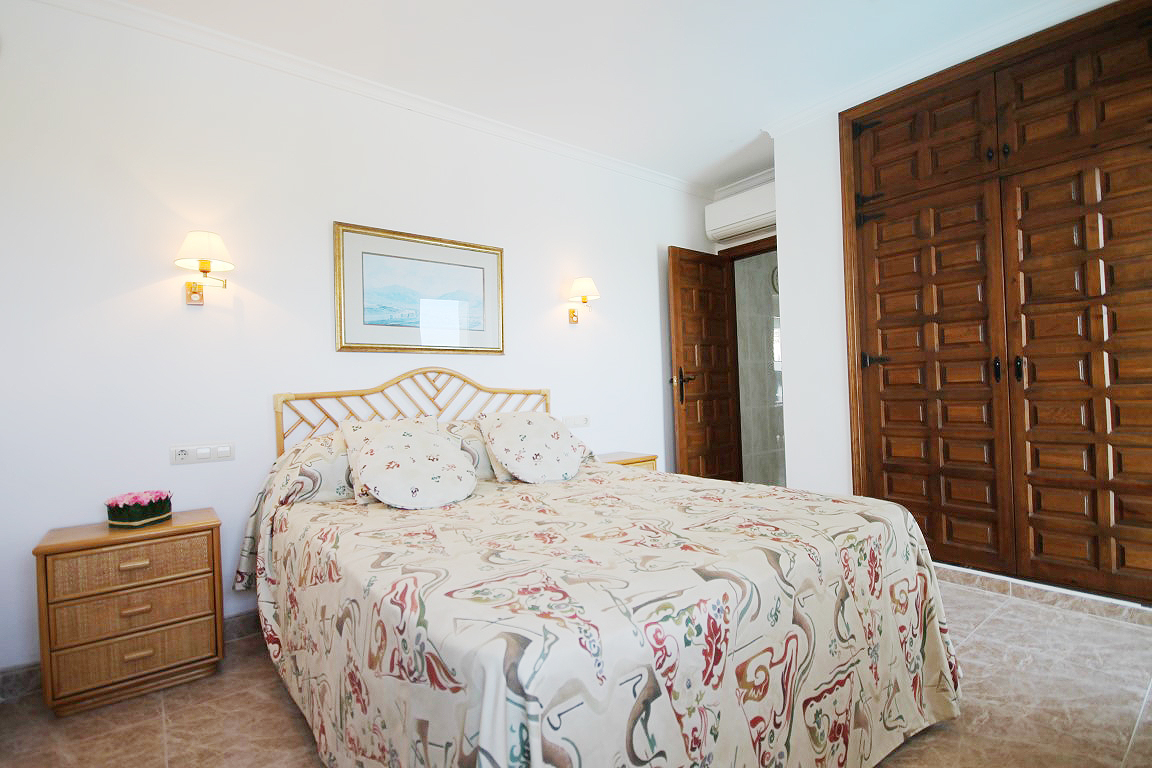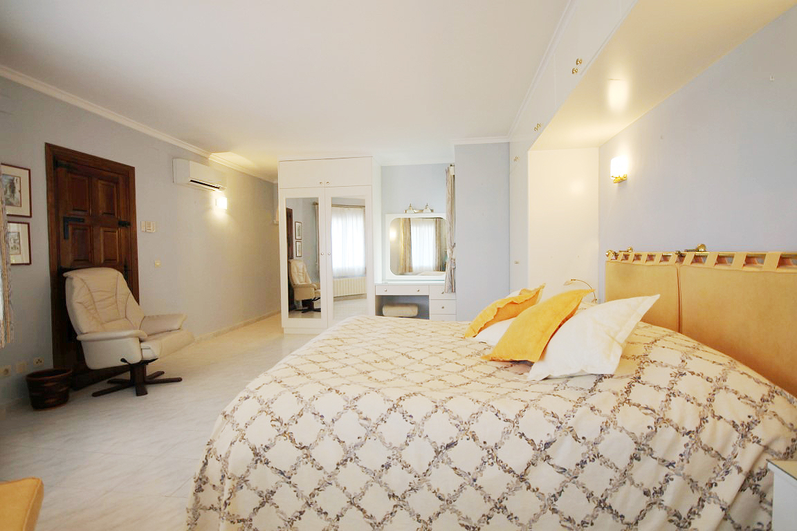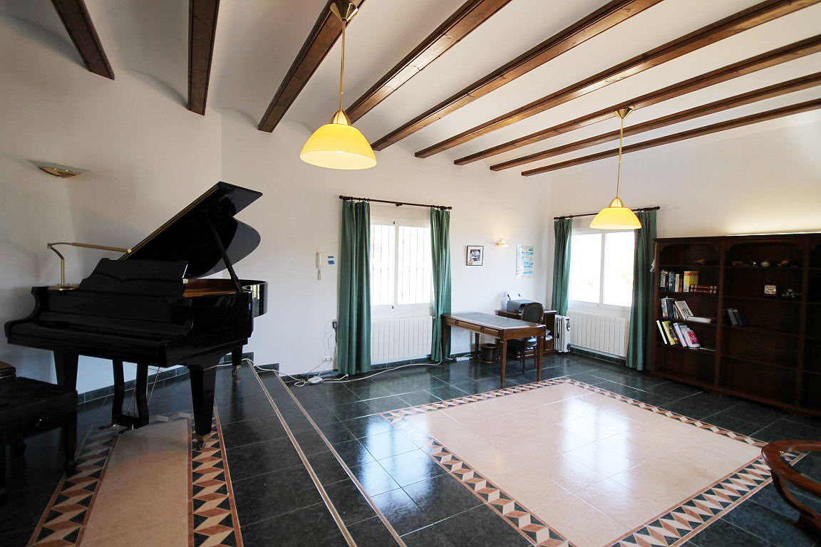 For Sale: This substantial villa of just over 400m is located close to the town in the Montgo Castellans area of Javea where from its elevated position the property enjoys lovely panoramic south facing views across the valley to the sea.Situated at the end of a tranquil Cul De Sac the plot borders on Montgo Natural parkland guaranteeing the privacy of the property. The gardens are terraced for low maintenance and rustic in design with the irrigation system using collected rain water. The impressive gated driveway leads directly to the garage and main entrance to the villa where you enter into the main living area. Here there is a large family kitchen connected to the dining room and large living room plus the vast covered terrace / Naya which can also be accessed from the guest and master suite. Below on the pool level there is an independent guest apartment with its own living and dining area plus kitchen and ensuite double bedroom. Adjacent there is a generous size room with a small kitchen which can also be used as a guest bedroom / apartment or another use if so desired.