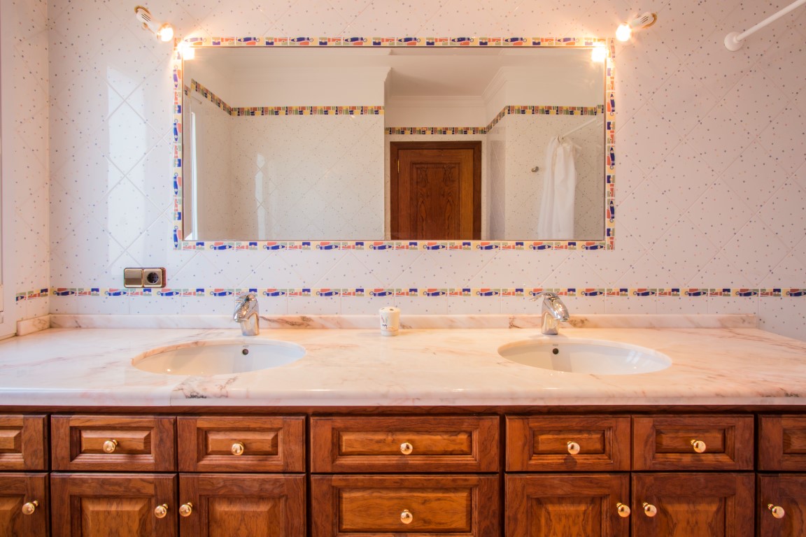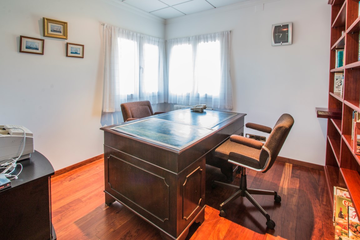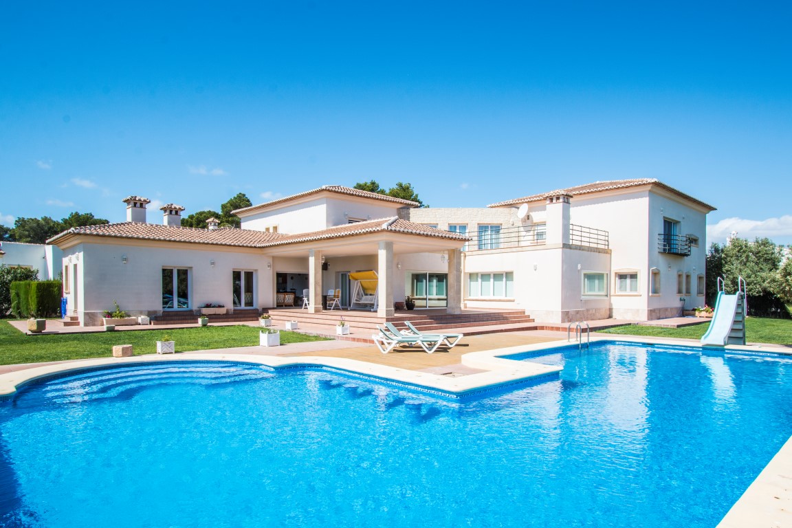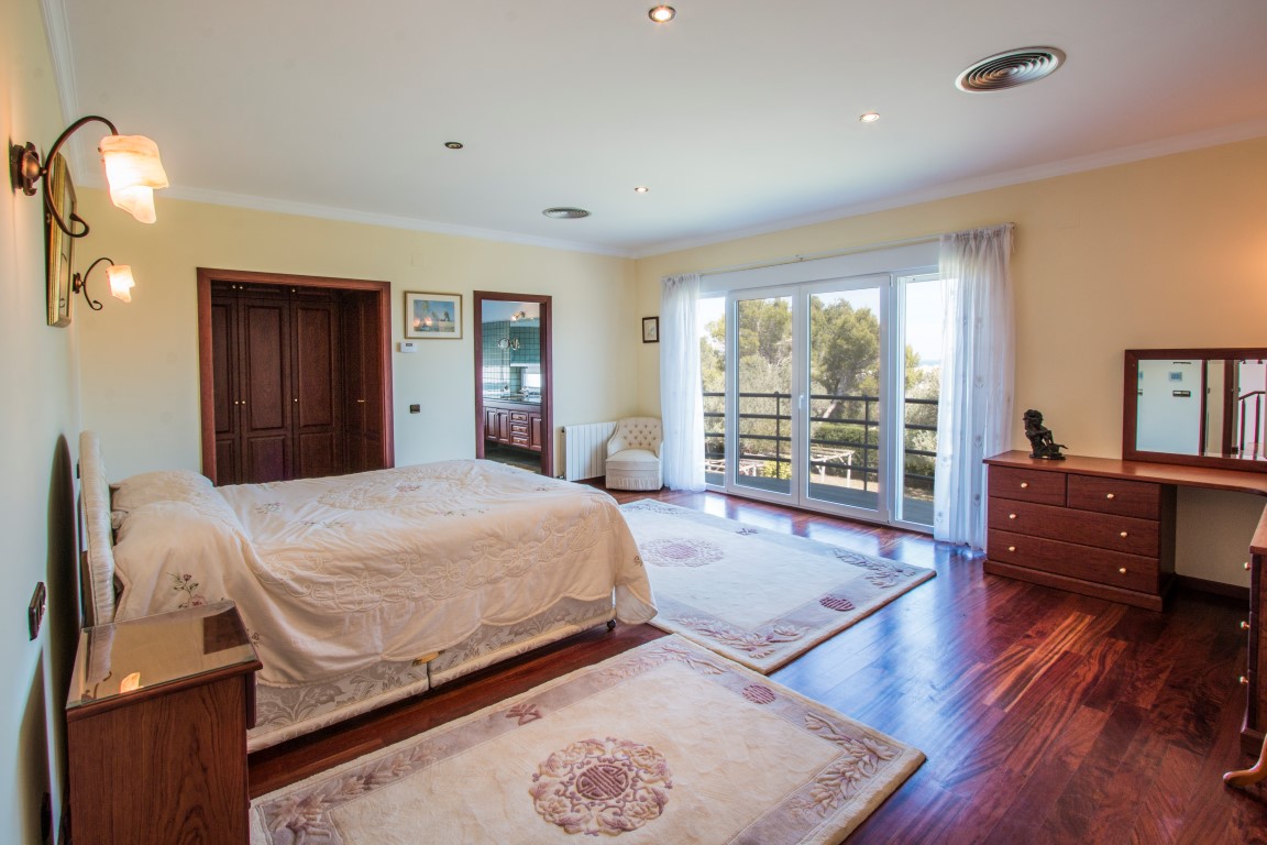 For Sale: High quality 5 bedroom suite property with sea views on a flat plot located in Cap Marti and less than 5 minutes drive to the beach The property has been built using the highest quality materials and finishes and has lots of character. Luxurious wood flooring throughout oil central heating and a central hot/cold air conditioning system. Every room throughout the property is large. The entrance is grand with a minstrels gallery and Tosca stone wall. The ground floor accommodation comprises of an open plan fully fitted kitchen with informal dining area sliding door leads into another dining area with BBQ alongside that has direct access to the terrace and garden. Guest cloakroom shower room utility room living room with feature fireplace and Tosca stone wall formal dining room snooker room with cloakroom and an office double bedroom with en suite his and her bathroom. Upstairs is the master suite with his and her bathroom with shower and bath 2 fitted dressing areas and patio doors that lead out to a spacious terrace with lovely sea and panoramic views. There are another 3 double bedrooms all with their own en suite bathrooms and one of the bedrooms also has direct access to the terrace with sea views. A beautiful covered naya overlooks the pool and gardens. The gardens are flat and mainly laid to lawn with mature plants and trees. The swimming pool is extremely large with Roman steps. Features of the property include: intercom entrance hot/cold air conditioning oil central heating alarm system own well UPVC windows and doors with electrically operated security blinds mosquito nets garage and secure parking for several cars snooker/games room office utility room A must see property to appreciate its size beauty and location.