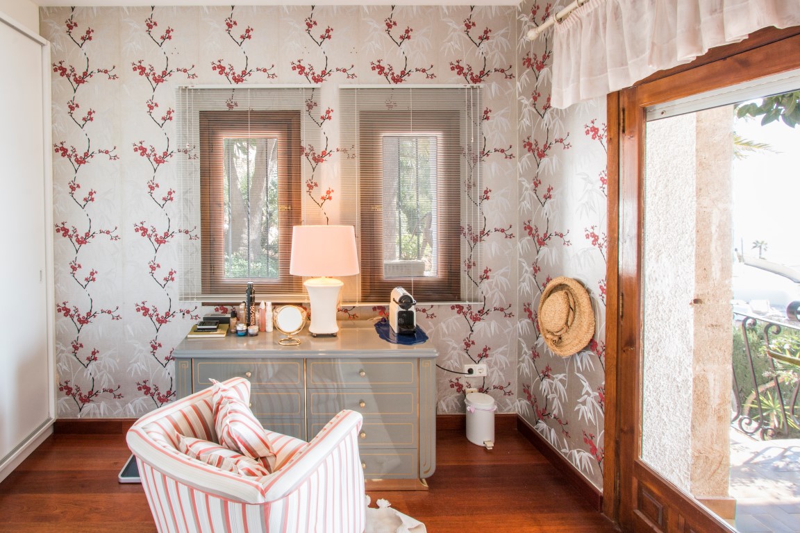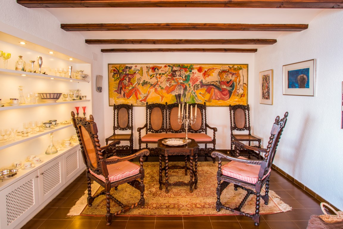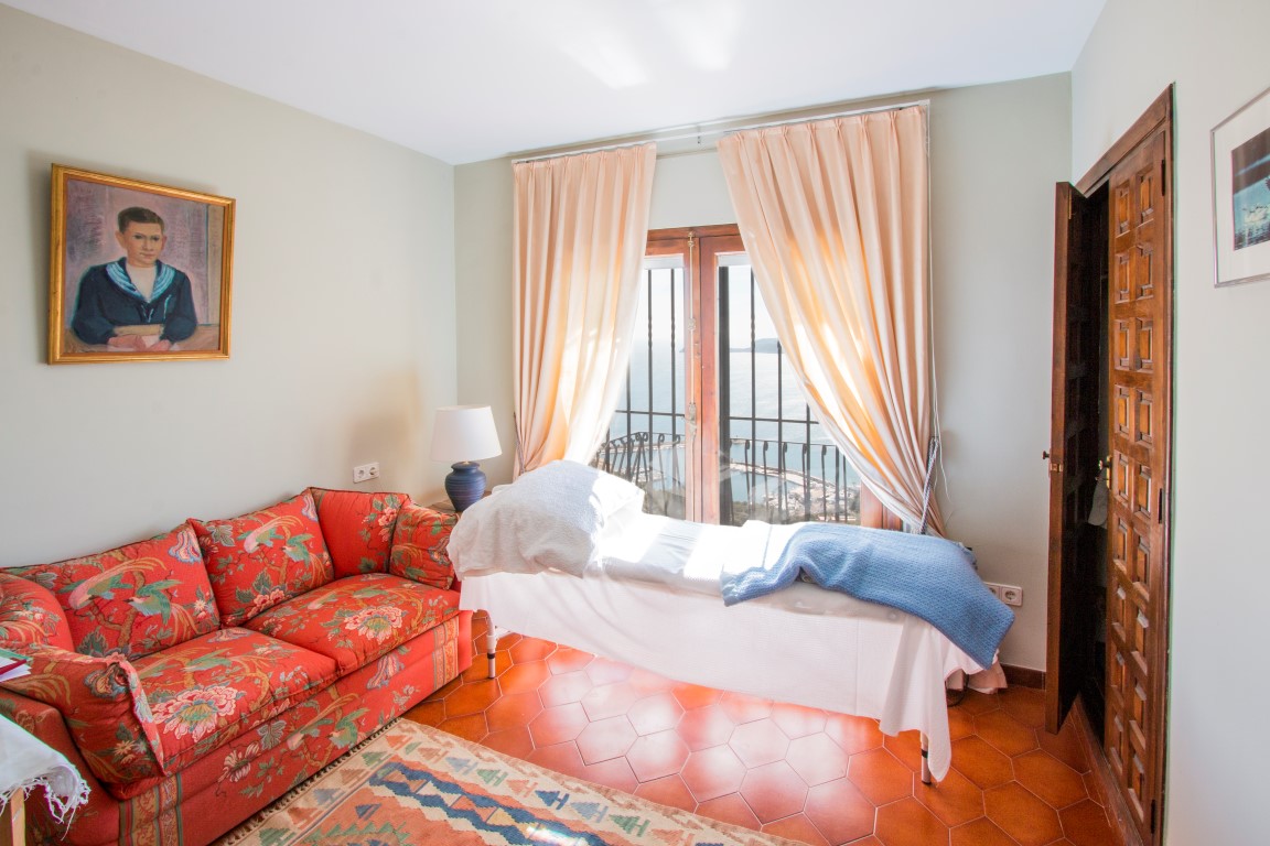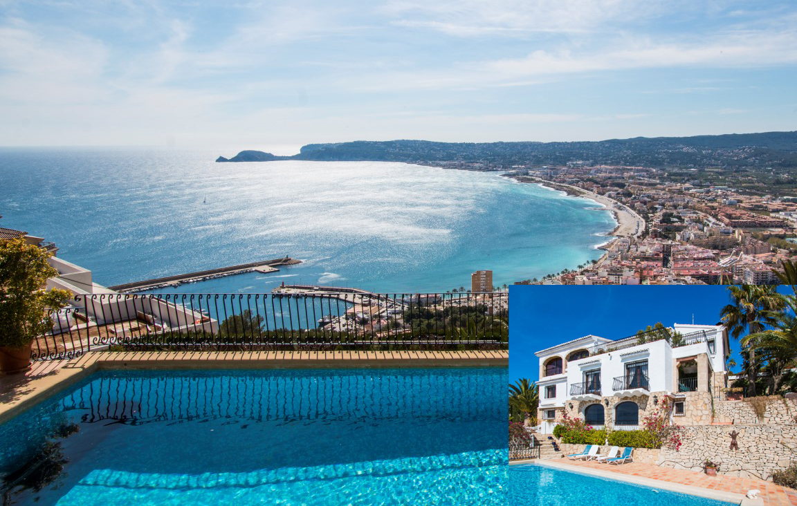 For Sale: One of first houses to be built in the area this property benefits from a prominent position on the Cuesta San Antonio. The villa is distributed over 3 levels. Entering on street level to the main floor there is a large off road parking area carport and garage. On the upper/main floor is the fitted kitchen with wooden carpentry dine in area and wood burning stove. From the kitchen there is direct access out onto a utility area and terrace with wooden gazebo and sea views. The living room also has a wood burning stove and various corners to enjoy the phenomenal views over the bay of Javea. There is a separate dining area and naya which has been glassed in. On the middle floor are the 4 bedrooms including the master with en suite bathroom dressing area and private terrace. There is also an office area on this floor. With separate access the lower floor comprises of a studio apartment with sun deck. The pool is heated with electric heat pump. The villa enjoys a due south orientation and 270 views over the Mediterranean and the Javea countryside and solar panels generate 70% of the years energy. The current owners have renewed the plumping and electrics.