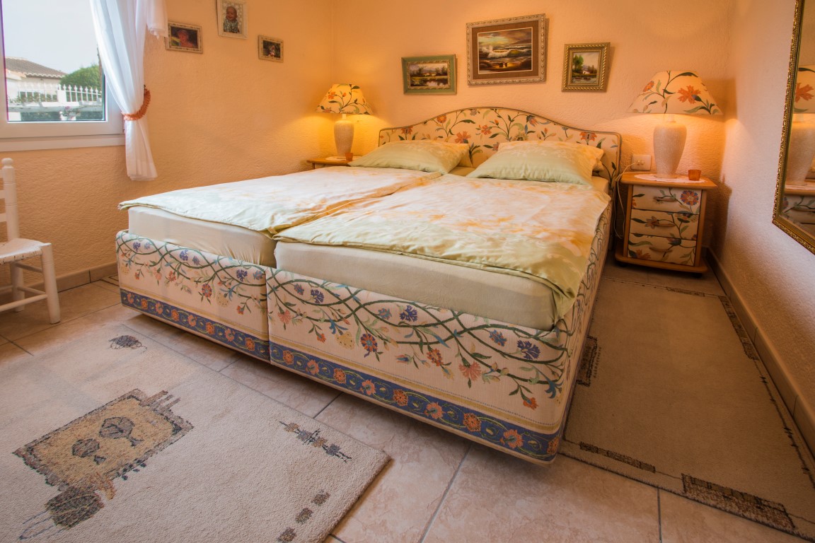 For Sale: Immaculate single level villa on a totally flat plot walking distance to the restaurants bars and amenities in Costa Nova Jvea. This charming villa has been completely renovated and comprises glazed naya entrance hall living/dining room with brand new wood burning stove separate dining room modern and fully integrated kitchen master bedroom with en suite bathroom two double bedrooms family bathroom and a separate second living room which could also be used as a fourth bedroom. The exterior of the property is equally as impeccable offering a South facing and private 8x4m swimming pool with terrace exterior shower complete summer kitchen with wood fired barbecue and charming dining area WC with shower 3 storage rooms and a garage. The garden is mature with some lawned areas palm trees and Mediterranean plants. Extras include new double glazing gas fired central heating off road parking for up to 3 cars and all new appliances and boilers. Superb value for money.