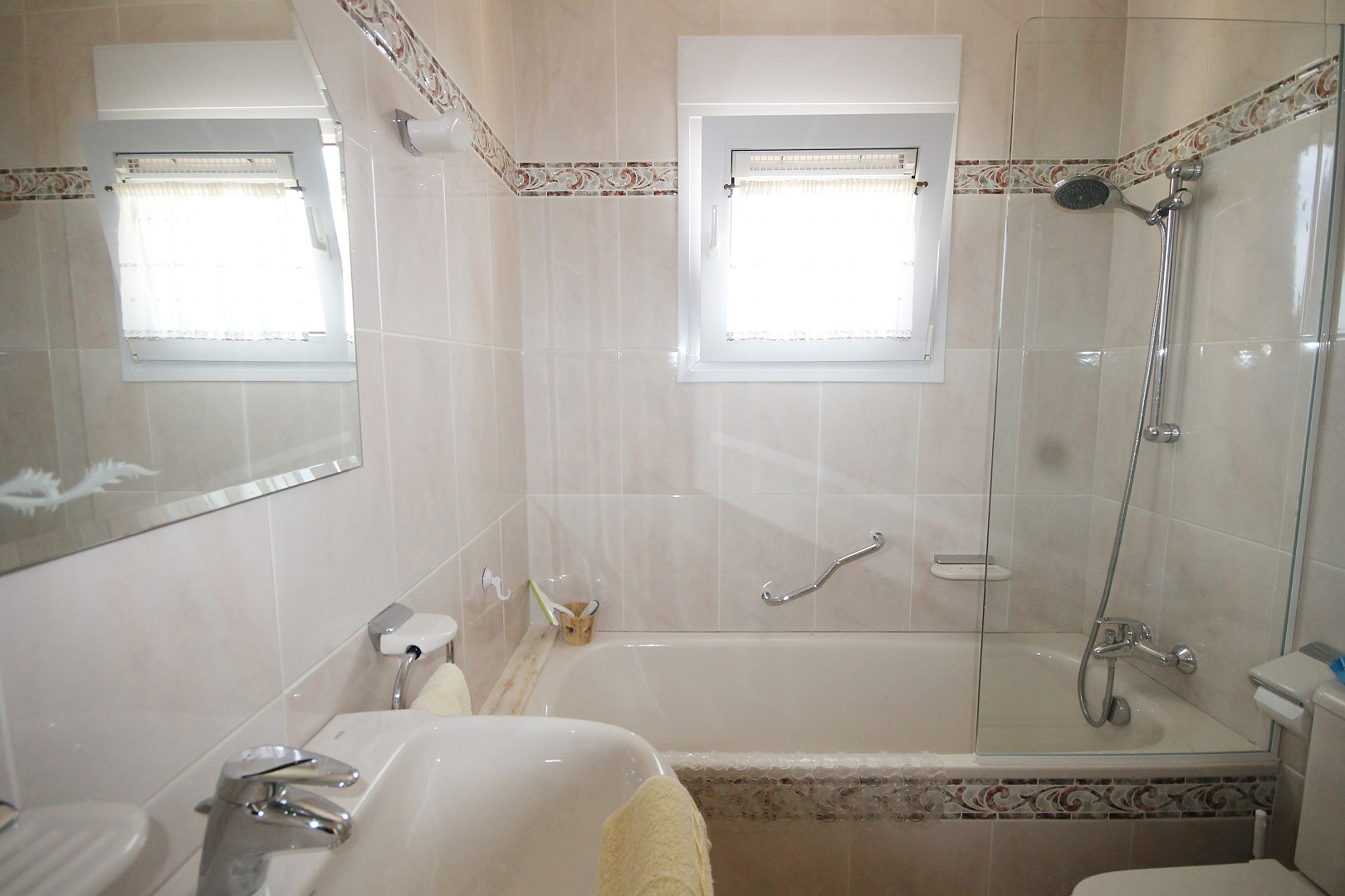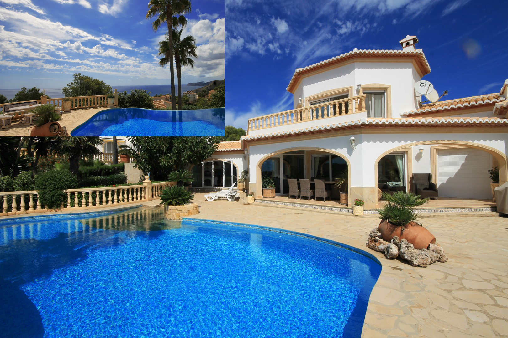 For Sale: Modern villa with spectacular sea views on a flat south facing plotin Costa Nova Marina. The main level comprises: entrance hall living/dining room kitchen with utility room and pantry glazed naya summer kitchen guest WC and double bedroom. Upstairs is a vast master suite with bedroom dressing area spacious bathroom an office or childs bedroom and private terrace with superb sea views. There is also an independent guest apartment with kitchen/dining room with access to the terrace two double bedrooms and family bathroom. The exterior offers large terraces 12x6m swimming pool with beach access shower and small garden all with fantastic views over the sea and coastline from Calpe to Cabo de la Nao. Extras include: under floor heating electric blinds double glazing air conditioning throughout double garage water tanks electric entrance gates and alarm.