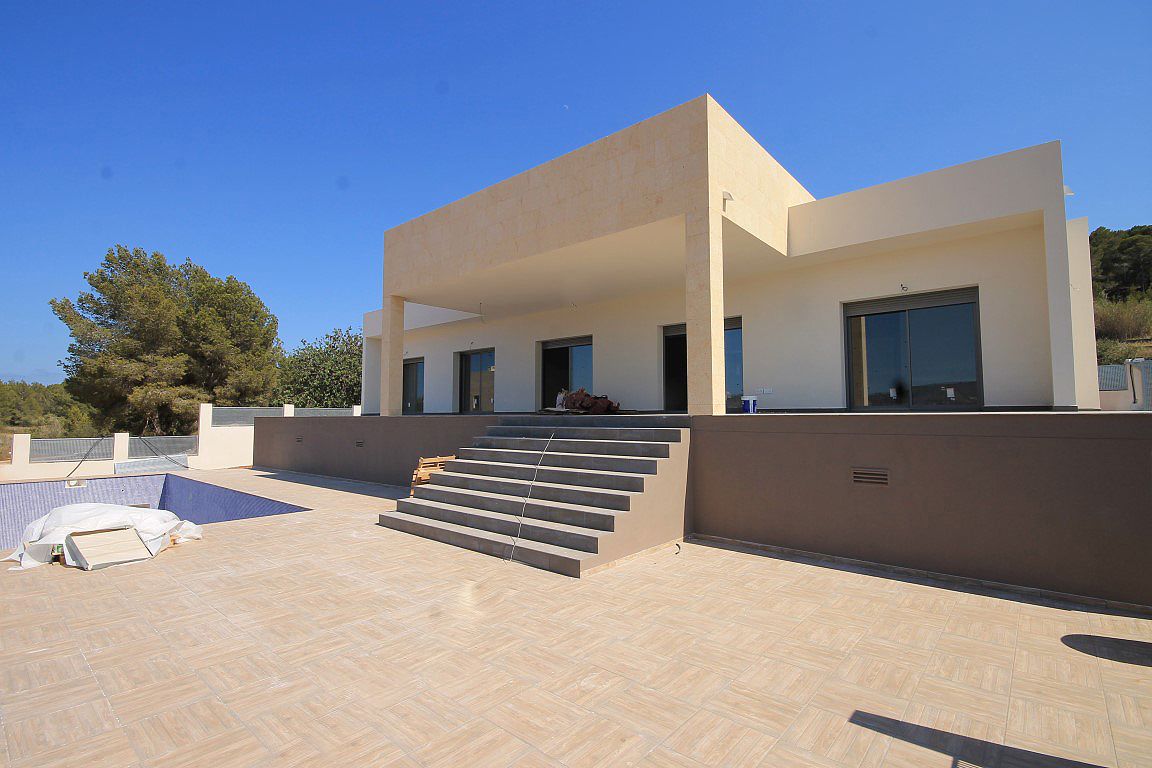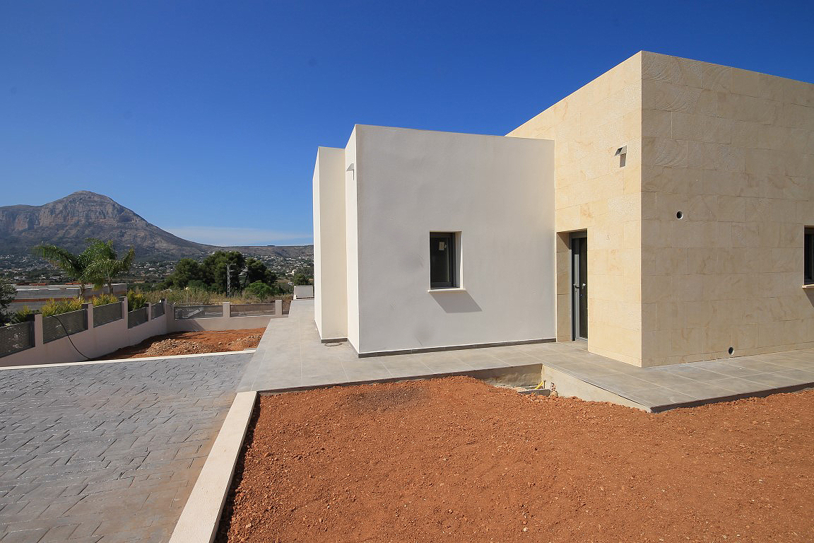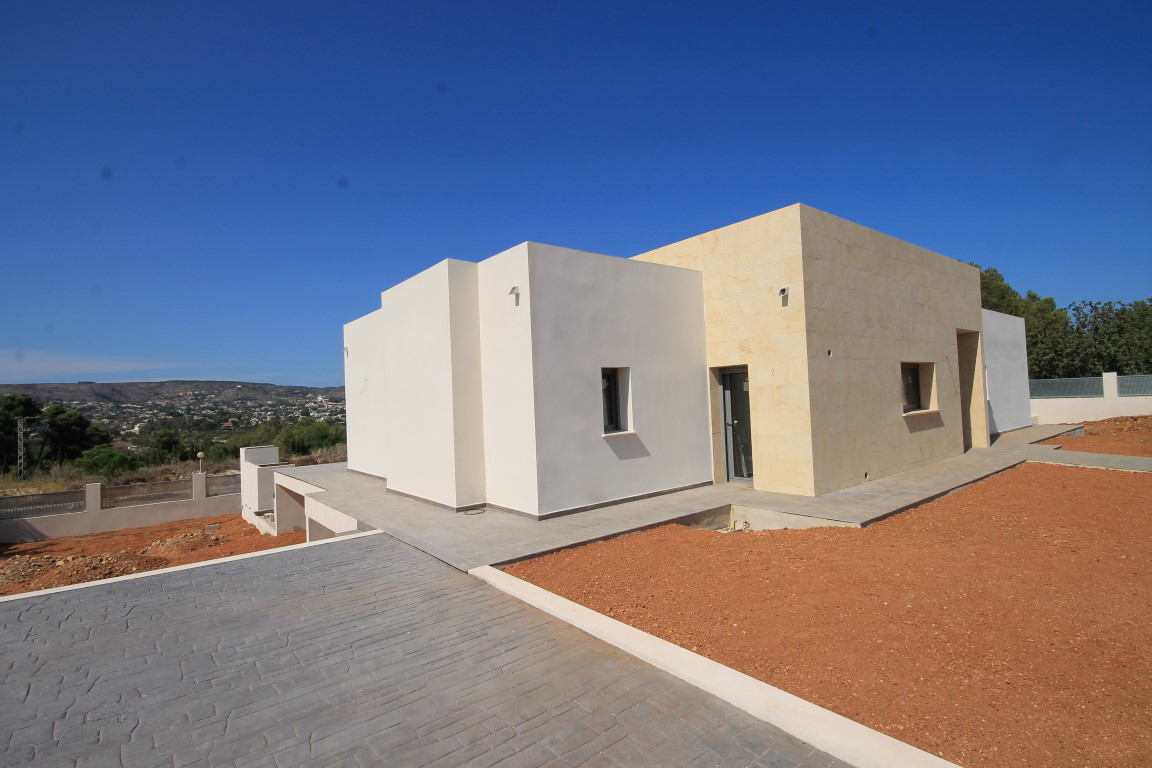 For Sale: Brand new modern villa situated close to the old town of Javea with beautiful views across the Montgo and town. This single level villa possesses 4 bedrooms and 3 bathrooms. With a striking design this property features a covered naya overlooking the 10x5m pool and beatiful views.