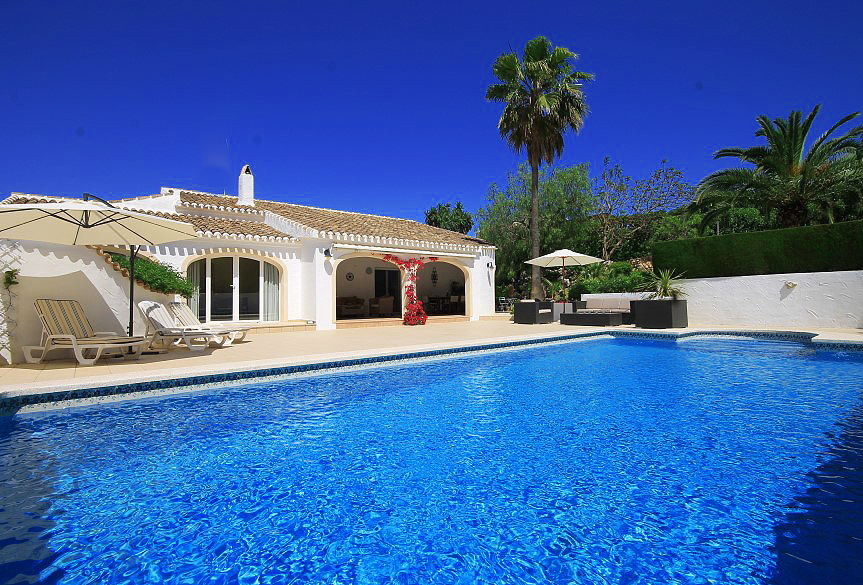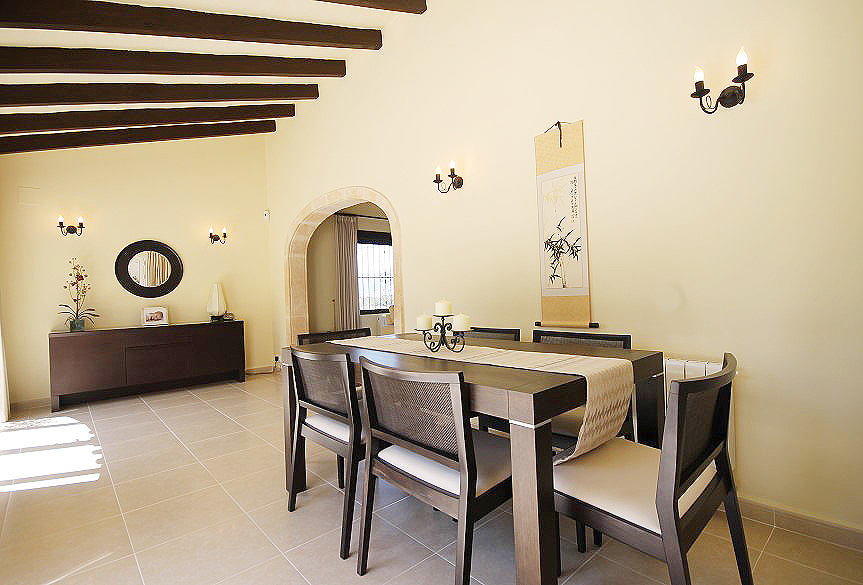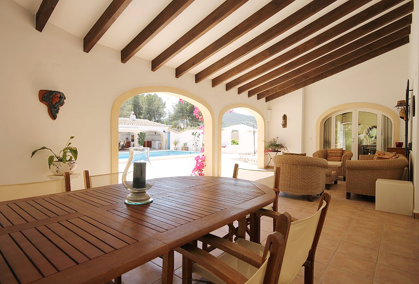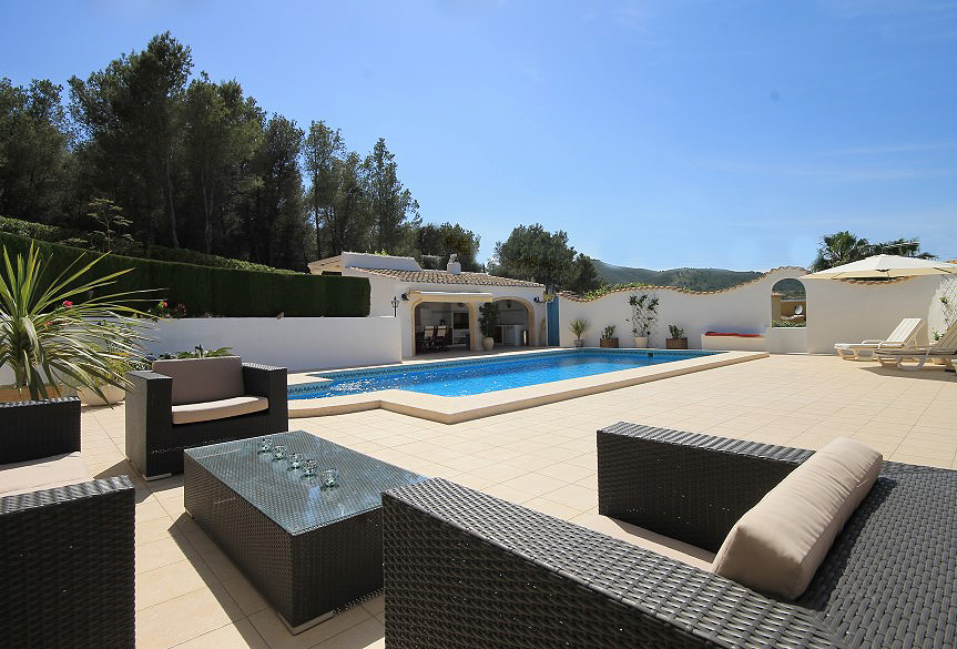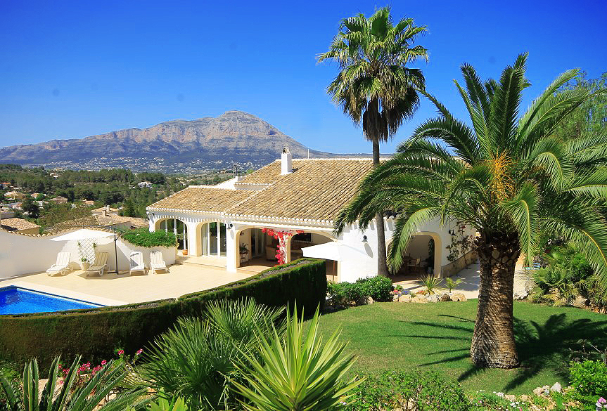 For Sale: This extremely well presented luxury south facing villa is located at the end of a Cul De Sac in one of the most prestigious Urbanizations in Javea. The property has been recently renovated to a high standard while still featuring traditional aspects such as Tosca stone arches and fireplace plus barrel and beamed ceilings. The principle living area boasts a generous size living room with secondary sitting room separate dining room large kitchen and large poolside Naya there are also 3 double bedrooms including the large master suite with dressing room while the lower floor offers independent guest accommodation with 2 further bedrooms and bathrooms plus separate access and private garden. The beautifully landscaped gardens offer various areas to relax while enjoying the fabulous views of the Montgo mountain along with an extensive fruit orchard.