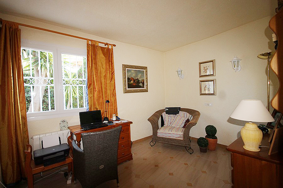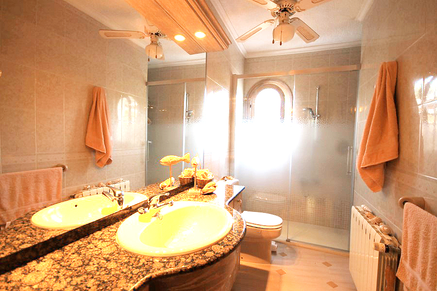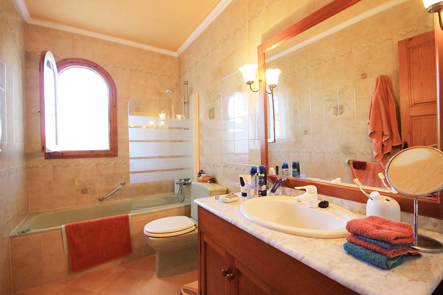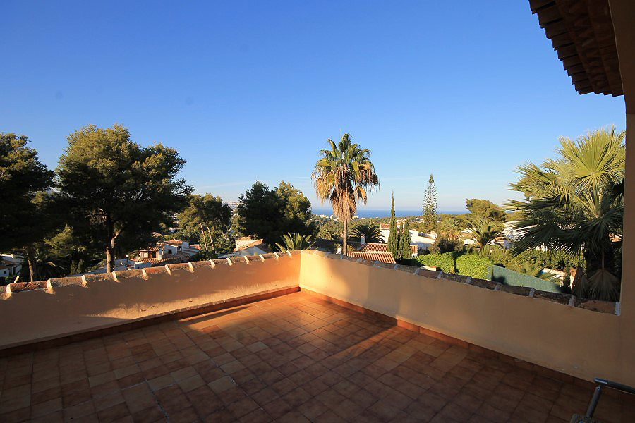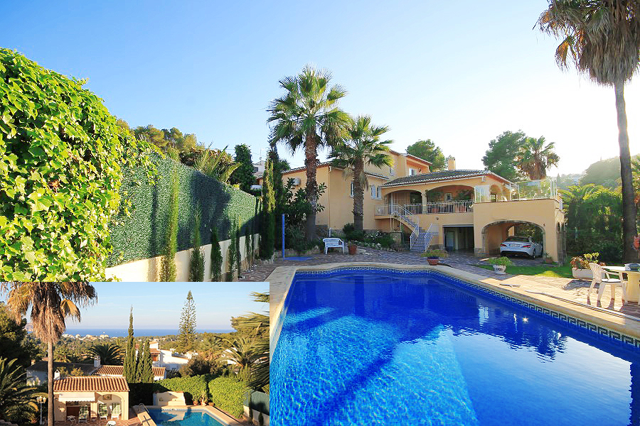 For Sale: Spacious 5 bedroom villa with sea views in the sought after urbanisation of El Tosalet. This property built using high quality materials is well distributed offering a central entrance hall with access to the exterior living space on one side including modern rustic style kitchen living/dining room with fireplace picture window with lovely views and access to the naya and uncovered terraces all with sea views. To the other side of the entrance hall are three good sized double bedrooms all with built in wardrobes and air conditioning plus two family bathrooms (one with Italian shower). Upstairs is dedicated solely to the master suite with bedroom bathroom and spacious terrace with panoramic views. Downstairs is a covered car port large garage bedroom plus vast underbuild space which could easily be converted into further accommodation. The exterior of the property offers lush garden with mature trees 10x5m swimming pool summer kitchen and dining terrace. Extras include: double electric gated entrance central heating urbanisation with 24hr security patrols.