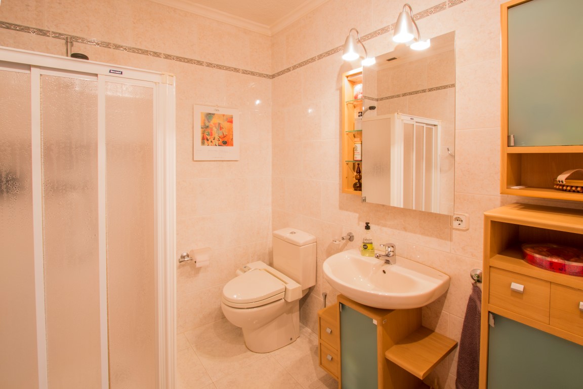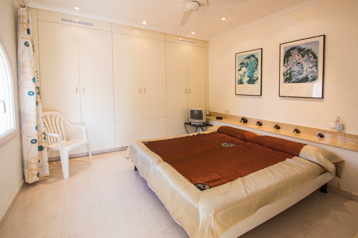 For Sale: Located in the established area of Balcn Al Mar with walking distance to amenities this substantial property boasts 4 generous size bedrooms over 2 separate independant accomodations. There are 3 double bedrooms and 2 bathrooms (1 ensuite) along with a large lounge diner with american style kitchen on the upper floor while below poolside there is a separate guest apartment with one bedroom and one bathroom. The large terrace and pool has a shaded summer kitchen and BBQ area while the stepped plot feature low maintenence irrigated gardens and two separate accesses.