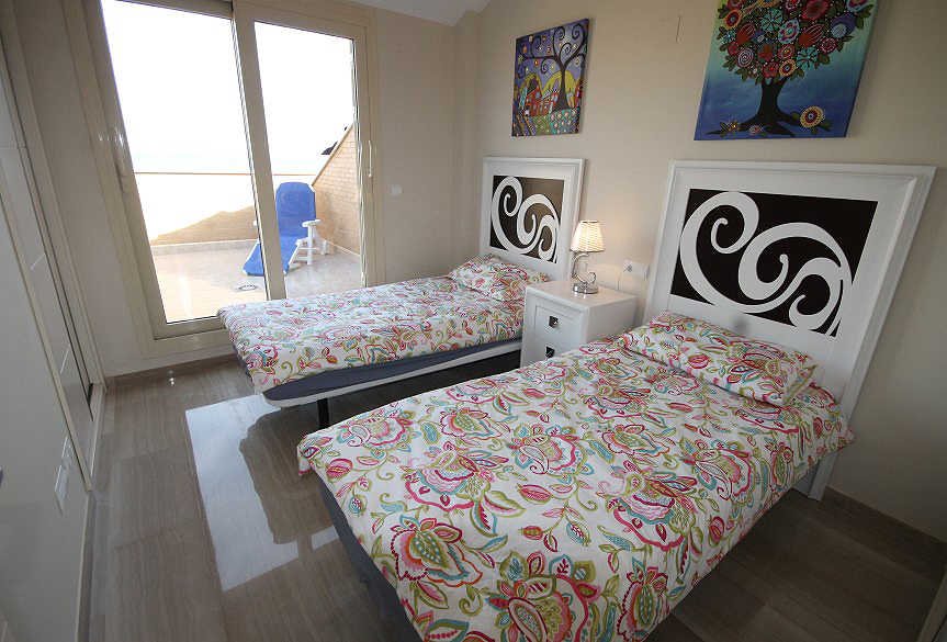 For Sale: Elegant penthouse of 160m (terraces included) distributed over 2 floors situated in the Playa Arenal area a few metres from the sea and boulevard. Built in 2009 this property offers a large open plan living/dining room with access out onto aspacious terrace with full frontal sea view 3 double bedrooms all with fitted wardrobes 2 bathrooms 1 ensuite to the master bedroom and a fitted kitchen with separate utility terrace. There is an additional uncovered terrace off of the master bedroom. The property is being sold with storeroom and underground parking place. Finished to a high specification this property is an ideal investment or holiday home purchase.