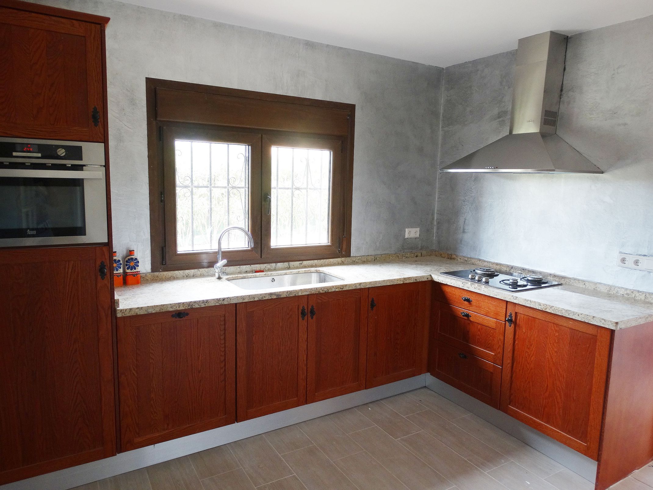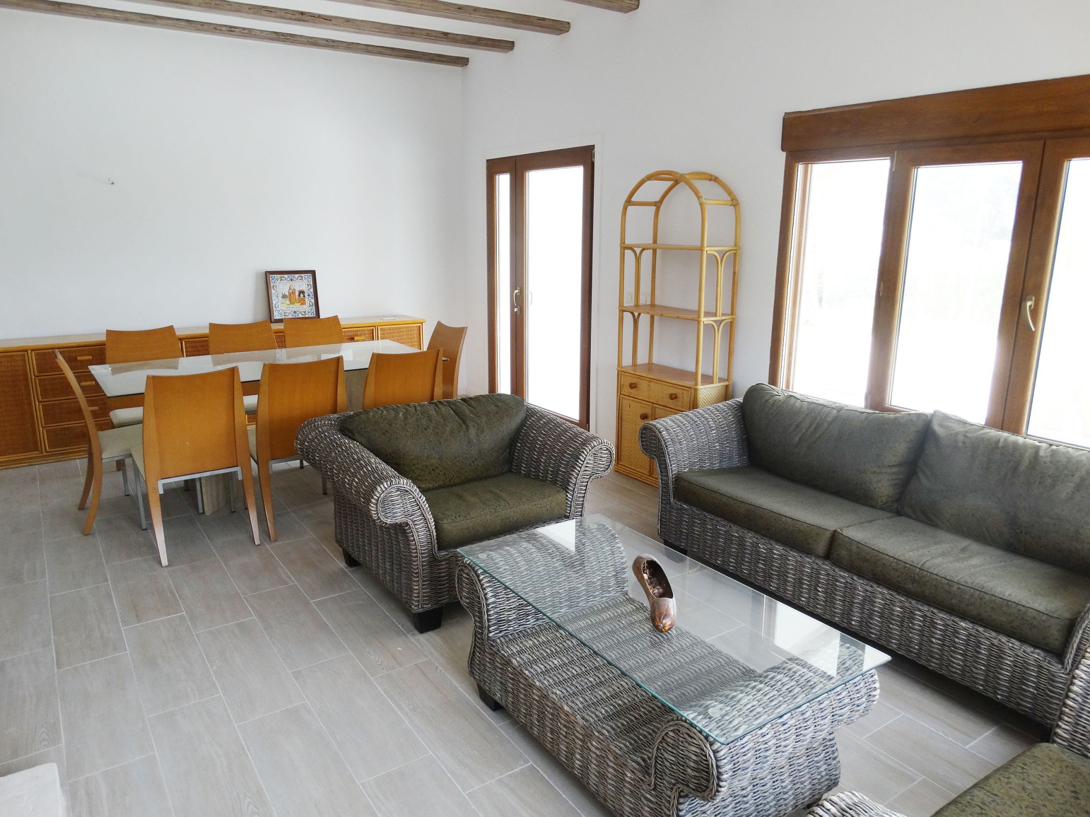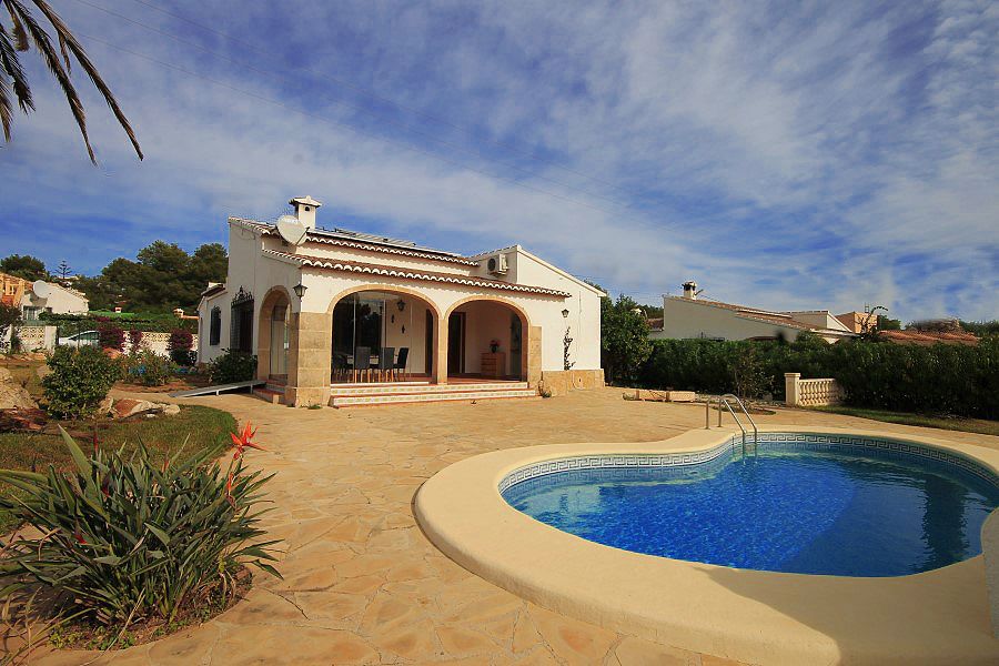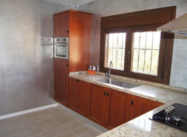 For Sale: Traditional single level villa constructed on a flat plot which has been fenced and hedged and laid to lawn in part. The property benefits from a recent refurbishment of the windows to wood effect PVC and double glazing and new fitted kitchen with integrated appliances. The open plan living/dining room leads directly out onto the south facing naya with tosca arches and glass curtains to give the option of a secondary living or dining area. The 3 double bedrooms are all fitted with wardrobes and are serviced with 2 bathrooms. The kidney shaped pool is situated on the south side with terracing around. There is carport and further off road parking. The property is situated a short walk to various restuarants.