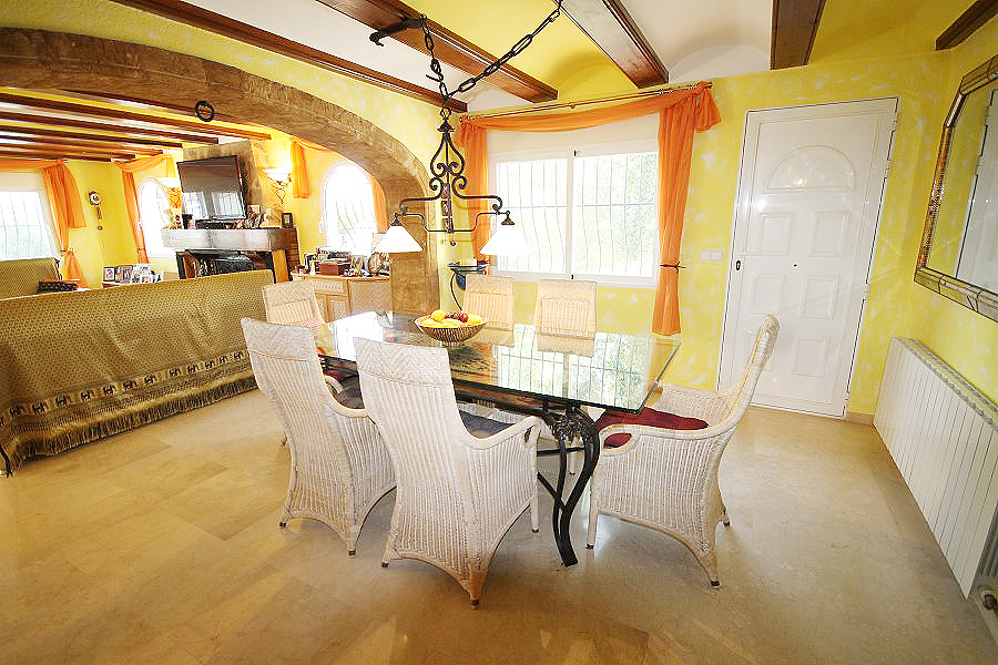 A sprawling property boasting many classical features such as original tosca mined from the Port of Javea used in the arches that are a prominent feature inside and outside of the villa. Distributed over 3 levels there are 5 double bedrooms in the main house and 4 bathrooms 3 of which are ensuite. While the majority of the villa is around 30 years old there are parts that date back around 100 years. The villa has been continually renovated since 1998 with the latest of the works taking place from 2011 to 2013 and include a new kitchen and 2 new bathrooms. In addition there is a separate office of 17.30m which has been plumbed and designed for further accommodation. The gardens have been heavily landscaped with many palms and various fruit trees and laid to lawn. Double electric gates lead into the large driveway culminating in a double solid wood pergola for parking for 2 cars and the garage entrance. The property has a full size tennis court.