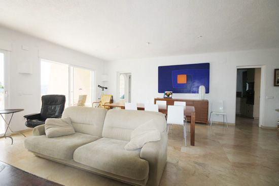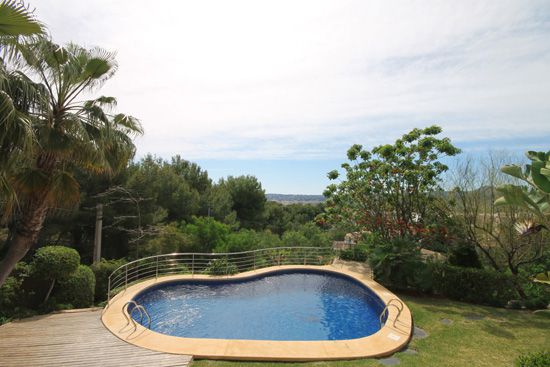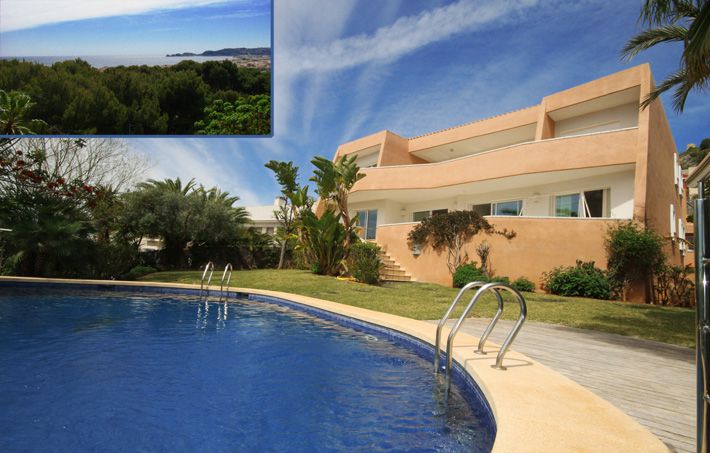 For Sale:Spectacular villa designed by the famous architect Manuel Jorge with gorgeous panoramic views of the sea the valley and the town of Javea. This very modern style villa is south facing and has a spacious living area of 257m2. The upstairs has a large lounge that leads out to the terrace a kitchen 2 bedrooms and 2 bathrooms. The ground floor is designed as 2 independent 2 bedroom apartments each with a lounge kitchen bathroom and terraces. The garden is flat on 2 levels and landscaped with mature Palm trees the pool has a freeform with terrace decking. This villa also has solar heated hot water under floor heating electric blinds and is prepared to install a lift to be wheel chair friendly.