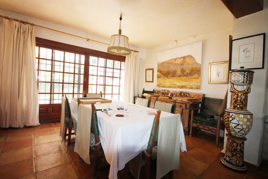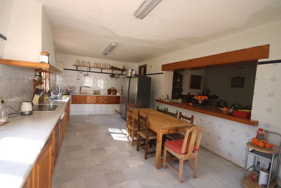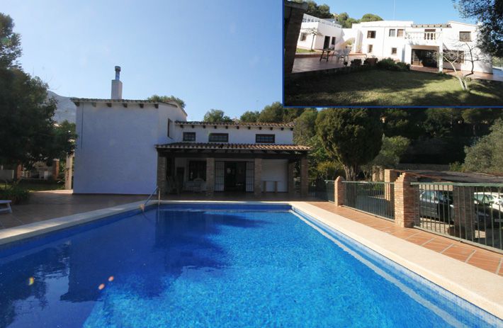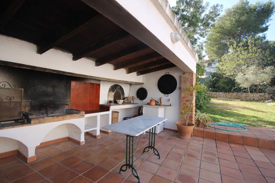For Sale:Spanish style villa with 8 bedrooms in the privileged environment of the National Park Montgo. The property has a built area of 554 89m on a completely flat plot of 2730m. There are 2 levels the main level comprises of an extensive L shaped living room that leads out to a large covered terrace 3 bedrooms a bathroom a guest toilet and a very large separate kitchen with a dining area. Upstairs comprises of another 5 bedrooms 2 bathrooms and a terrace. The property has been renovated partly in 2000 and has central heating throughout. The garden is landscaped with many designated al fresco dining areas. There is also a lovely barbecue area by the pool and an outside shower.Recently Reduced.