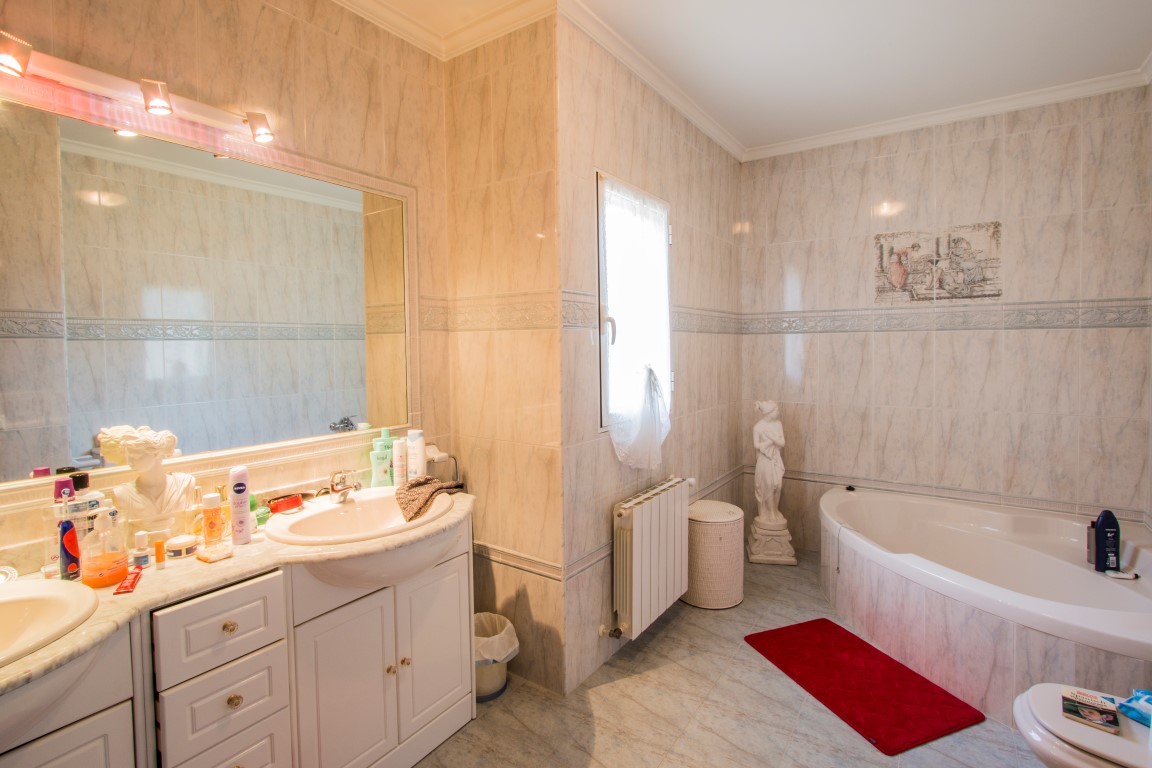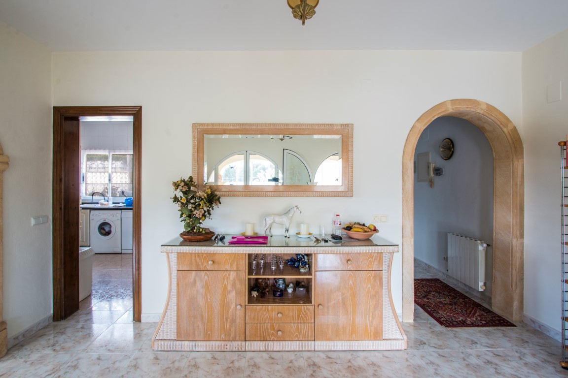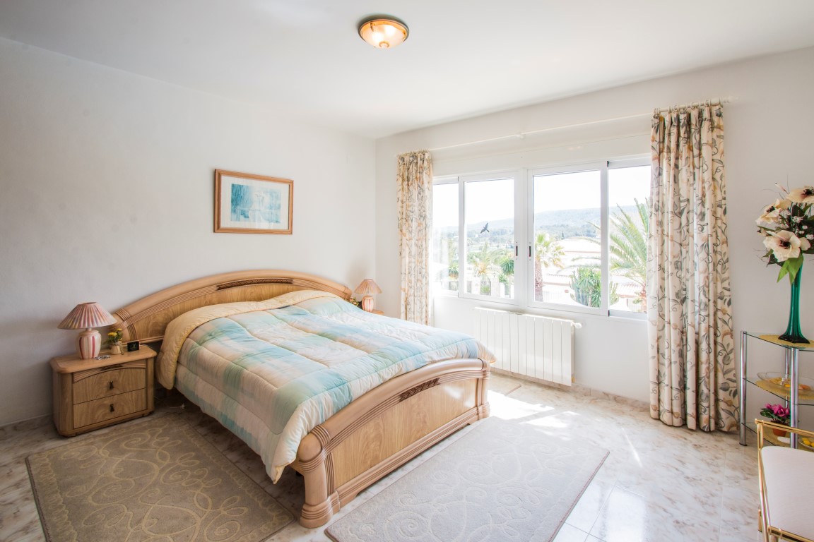 For Sale: Villa with 5 bedrooms and open views towards the Javea Golf Course. Good quality German build in a quiet residential area. Gorgeous landscaped garden with mature palm trees automatic irrigation system and automatic lights. 10x5m pool plus garage.
