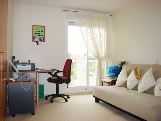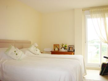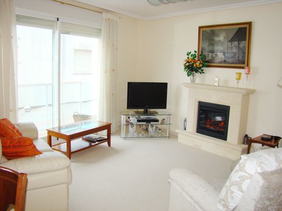 For Sale: South West facing penthouse apartment with 3 good sized double bedrooms with fitted wardrobes. Lift. Modern building wheelchair friendly. Garage with car lift. Sea and open country views. Tosca stone electric fireplace. Kitchen with white goods. In a tranquil location a few minutes walk from all amenities. Shared sat TV. Reduced from 189 000.