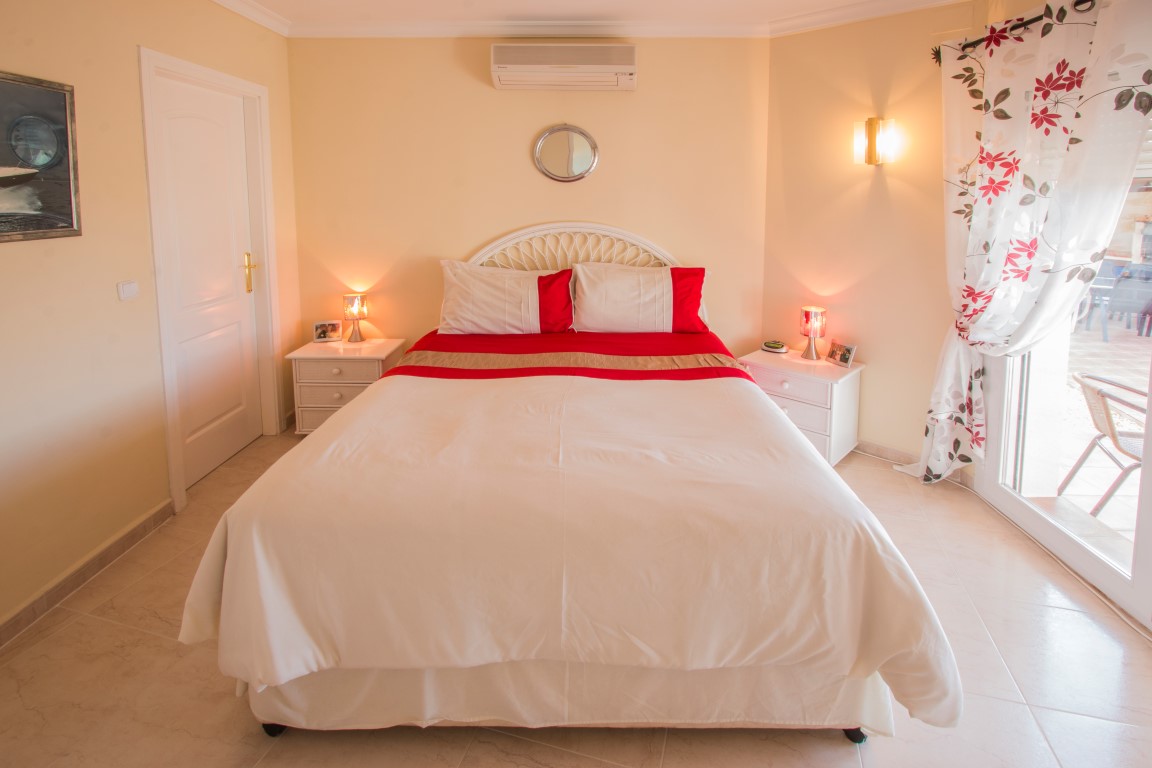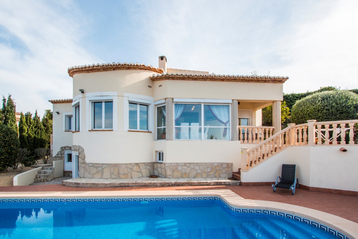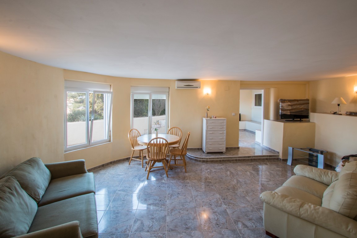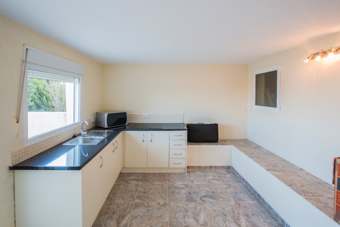 For Sale: Modern villa located on a very private plot in a tranquil location. Benefitting from superb panoramic views over Javea the Montgo and Cuesta San Antonio. The main living is distributed over one level in an open plan style with a separate guest apartment on the ground level. New kitchen and heat pump for the 11 x 5m pool in 2011. Landscaped garden with automatic irrigation.A high quality property with a difference that really must be seen.