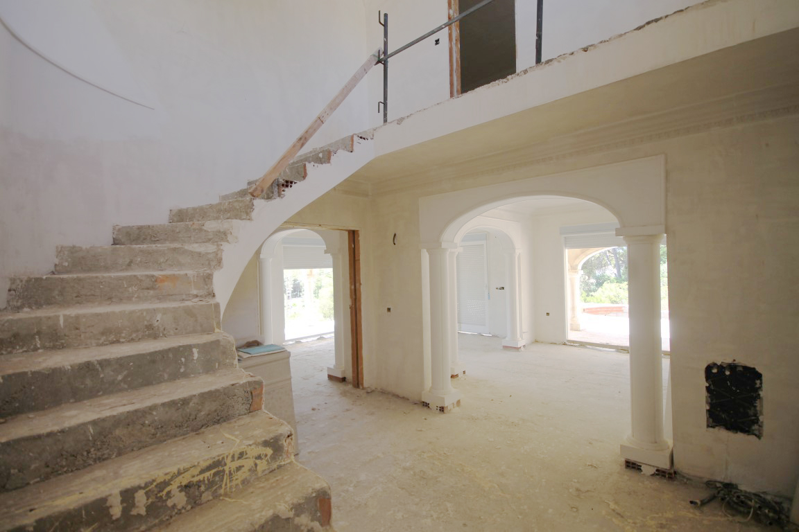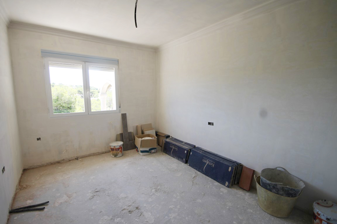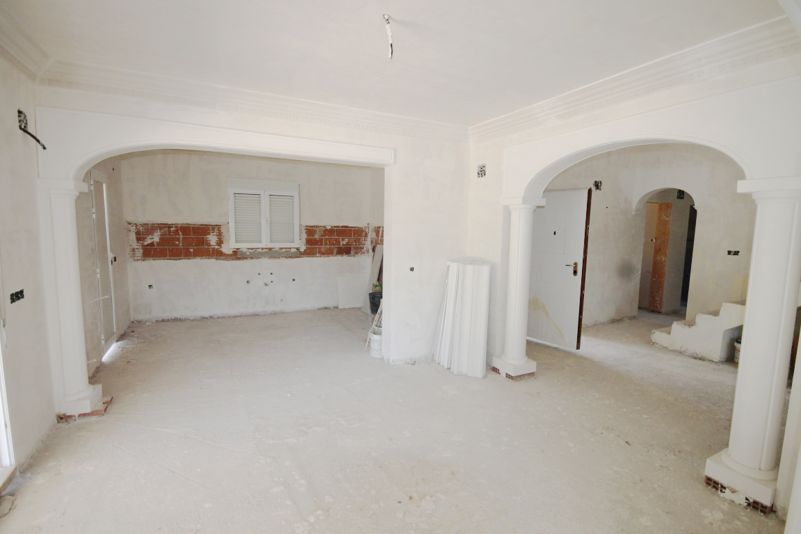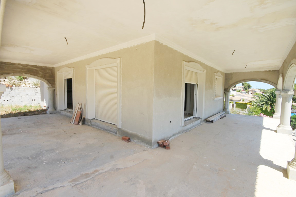 For Sale: This semi finished villa can either be purchased in its current state for a discount or the current owner will complete it within the asking price with the purchaser able to choose the finishings. Ther are lovely open views from the property with sea views from the master suite on the upper floor. There are 4 bedrooms plus a large underbuild of 70m which could be developed further if so required.