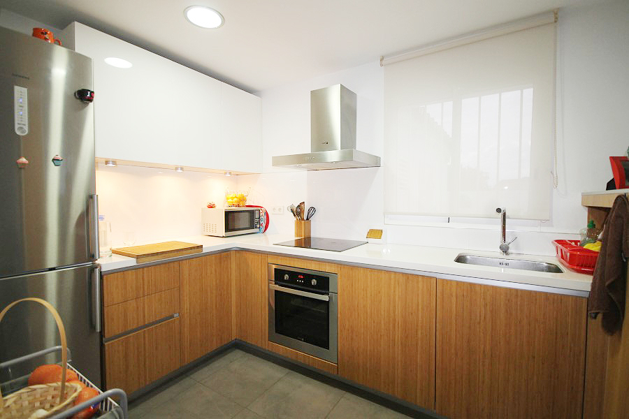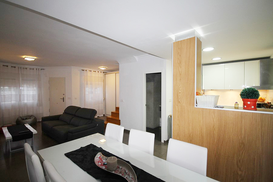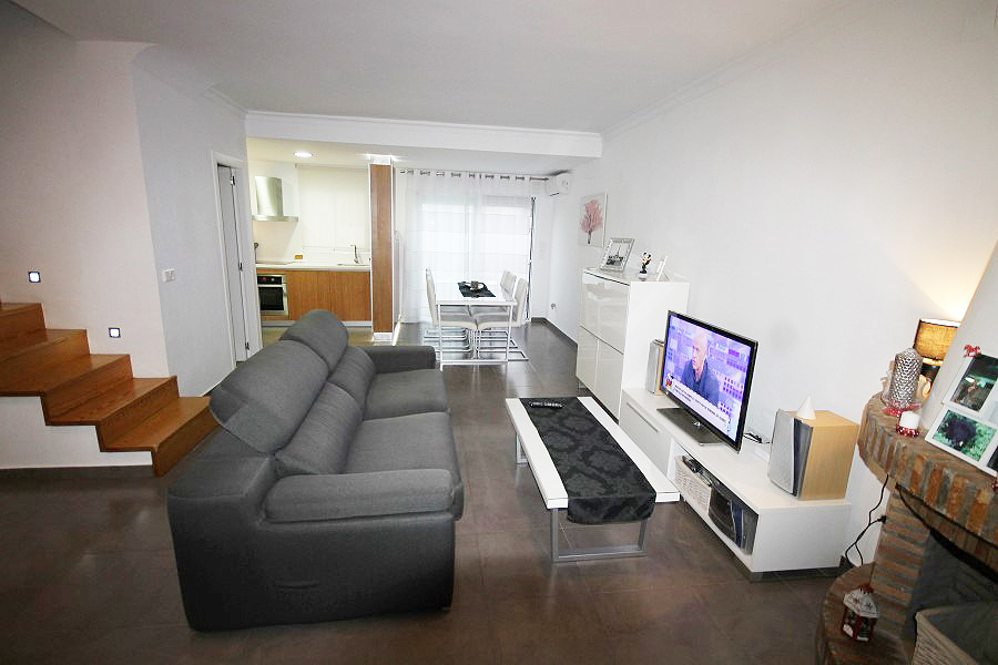 For Sale: Traditional style townhouse which has been immaculately renovated using luxury materials and design in a complex within walking distance to the beach and city centre of Denia. This townhouse set over 2 levels comprises front terrace with lovely views of the Montgo Mountain open plan loft style living/dining room with fireplace kitchen with fully integrated storage and appliances andluxury design features such as LED under cabinet and skirting board lighting guest WC and a South facing terrace with a laundry/storage room and space for a BBQ. Upstairs are 2 double bedrooms with built in wardrobes and modern shower room. Extra include: off road parking 2 communal swimming pools hot and cold air conditioning double glazing fireplace and all set in a superb location in the heart of Denia.