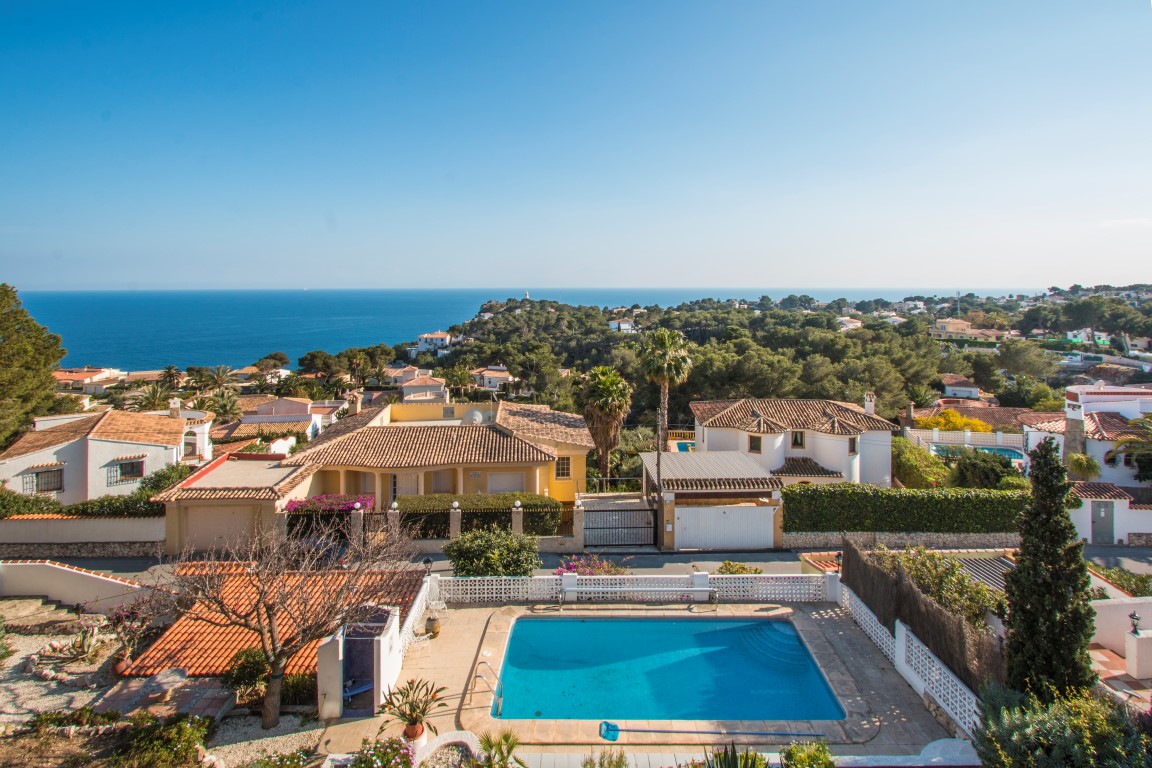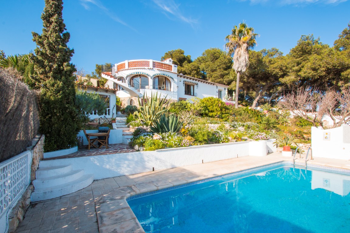 For Sale: Traditional Balcn al Mar villa in very good condition with exceptional South facing sea views. This traditional villa is set on a stepped plotof 3 levels and offers entrance hall leading to a large dining room with fireplace office area modern and fully equipped kitchen with breakfast terrace bright living room with a wood burning stove and access to the solarium all of which have superb views over the beautiful gardens and out towards the Mediterranean Sea.There are two double bedrooms with built in wardrobes and air conditioning plus a family bathroom on the main level and a very large independent guest bedroom with en suite shower room underneath.The exterior of the property offers a fabulous summer kitchen with covered dining area gazebo an uncovered dining area and 8x4m swimming pool with exterior shower. Extras include gas central heating 2 garages and air conditioning. A must see!