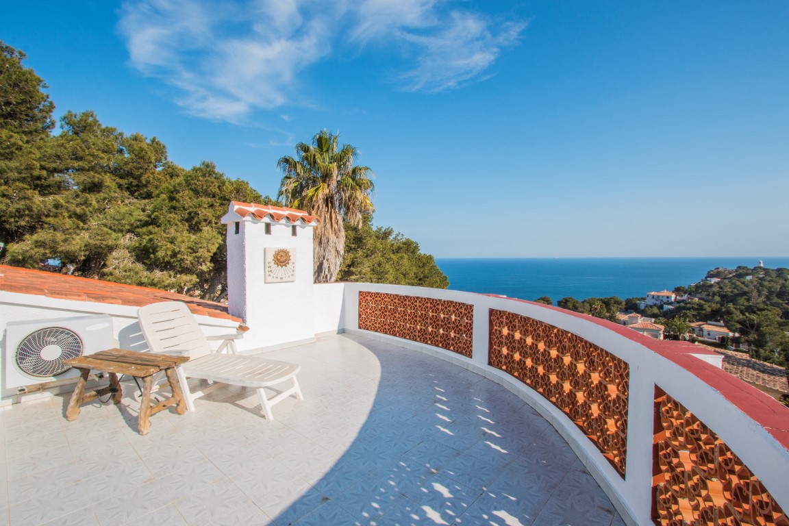 For Sale: Traditional Balcn al Mar villa in very good condition with exceptional South facing sea views. This traditional villa is set on a stepped plotof 3 levels and offers entrance hall leading to a large dining room with fireplace office area modern and fully equipped kitchen with breakfast terrace bright living room with a wood burning stov...