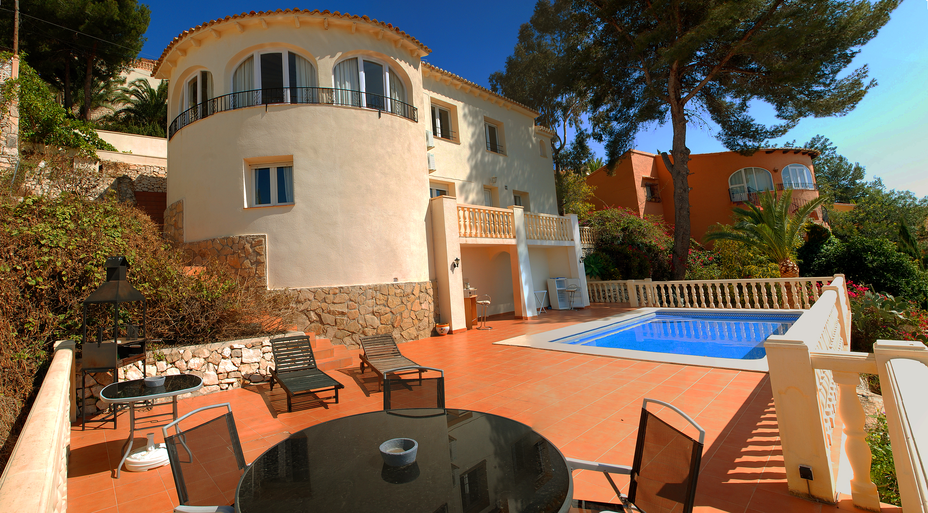 Traditional south facing Villa built in 1986 and totally refurbished a couple of years ago. 5 bedroom 4 bathroom sea and mountain views Air conditioned heating 10 x 5 pool 2 lounges large kitchen/dining room office fireplace 3km to the beach 1k to local bar and restaurants. Spectacular south facing Villa with amazing sea views. ref...