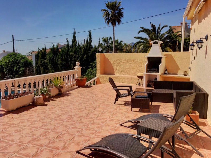 superb located villa in a sort after area. Only a 5 minute walk to the bars restaurant and supermarket this totally private villa has been used as an investment and brings in over 20 000 per year. Large low maintenance garden area big terrace and BBQ area lots of storage. 2 good size bedroom 2 bathrooms a great size shop front which used to be part of the villa and can easily be changed back off street parking for 3 cars. Great holiday home or investment property. Shops 300m restaurants 50m golf course 100m school 3km