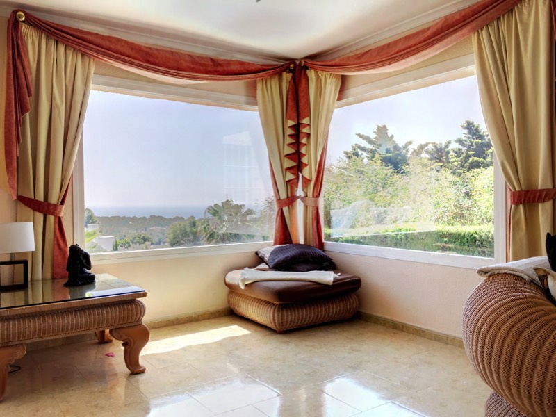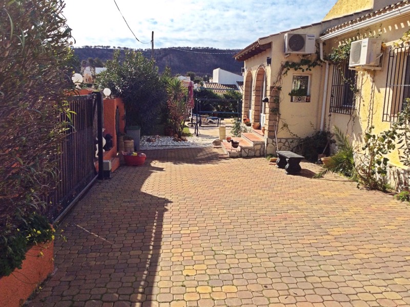 Large 4 bed 4 bath villa with SEA views. Walking distance to Moraira. Build 377m2 on a 836m2 plot. Private pool BBQ summer kitchen area underfloor heating extra attic room Garage Aircon. This property boasts a beautiful Sea view and is located just a 20 minute walk from the town of Moraira. Entering the property into an open plan living dining area with the sea views. There are sliding doors that lead onto a terrace where you can soak up the sunshine and enjoy the spectacular views. This area then leads down a small staircase to a private area with free form pool and summer kitchen. On the entrance level there is a fully fitted kitchen guest toilet master bedroom with en suite bathroom and a walk in dressing area. Leading down a spiral staircase you will find three more spacious double bedroom all with en suite bathrooms. The property also benefits from a storage room automatic entrance gate to the garage for one car. There are several seating areas around the villa and the plot overall is easily maintained. All windows are double glazed with mosquito nets. Aircon H/C in all rooms. Underfloor heating on the main level. There is an extra attic room that can be accessed by a pull down staircase previously used as an office. This property is quite unique in a very special area and viewing is recommended.
