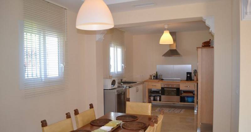 landscaped with a good size private pool. A large fully fitted kitchen which opens directly
