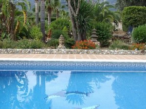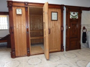 ===== >>>>> Main villa: 190 m2. 3 bedrooms, 2 bathrooms. Sauna and jacuzzi. Living room. Pscina with