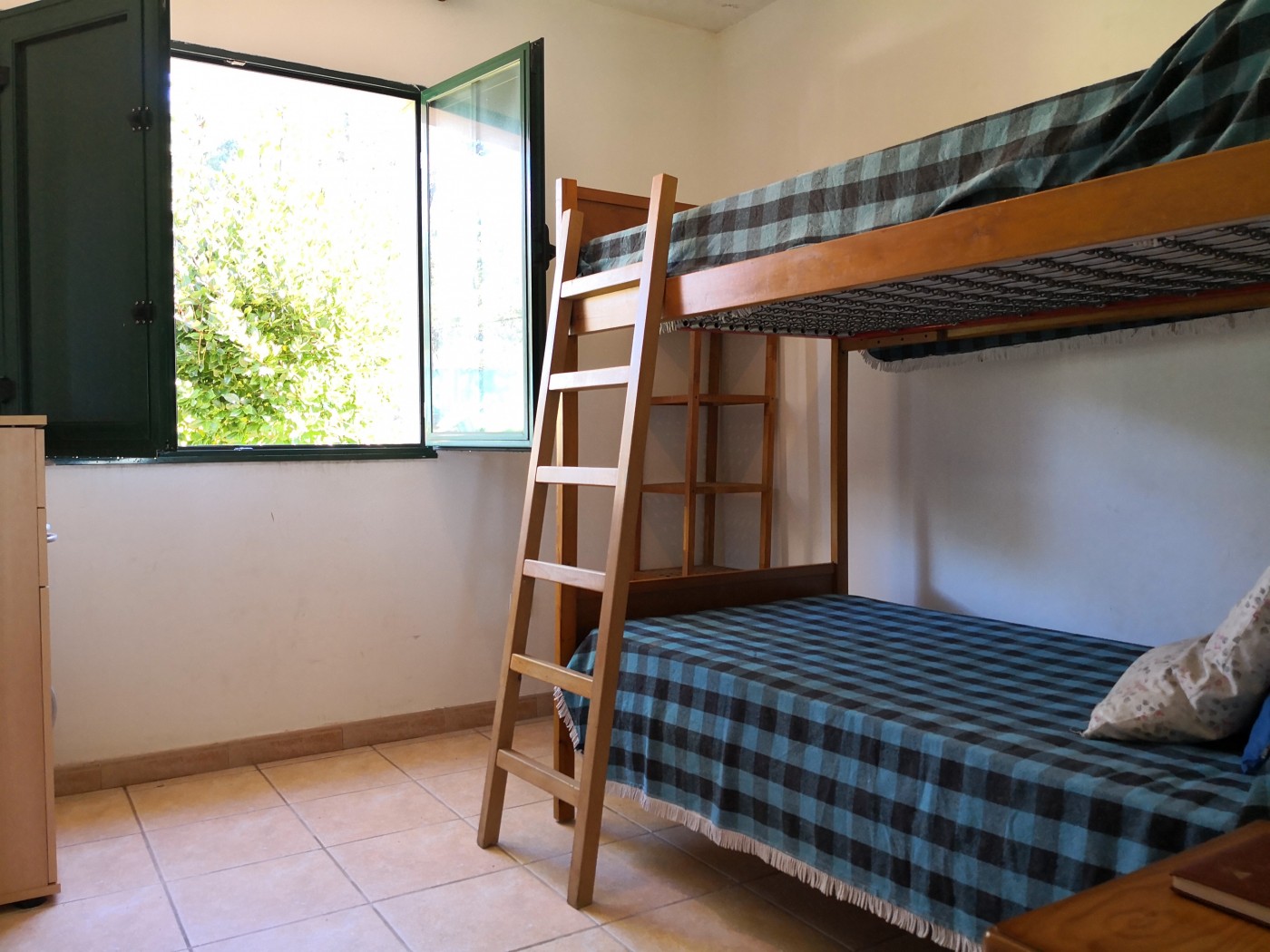 2 double bedrooms, a good size terrace and 1 bathroom. Upstairs, we can find a log burner
