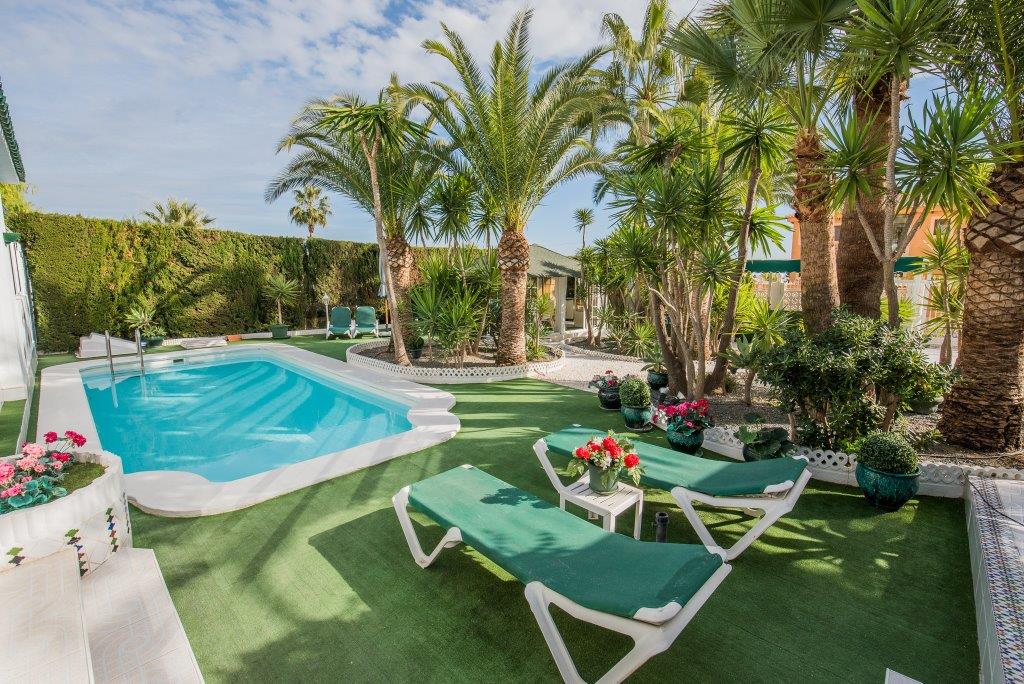 kitchen. Very wide and open with lots of light. Large garden with palm trees very well maintained. Air