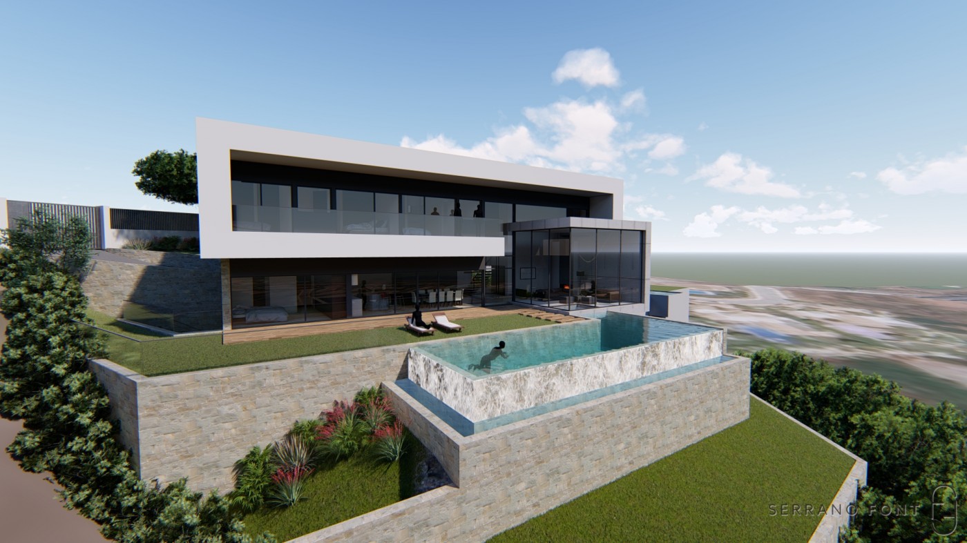 The house offers 6 en suite bedrooms, 4 parking spaces, an infinite pool, an elevator and