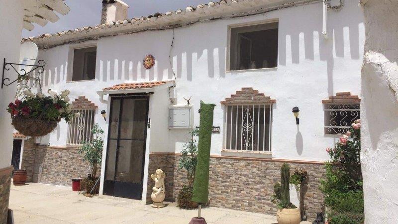 Beautiful 3 double bed 1 bathroom, 2 w.c. traditional Spanish property, 10 minute drive from Velez Rubio which offers everything expected of a large town. This property offers so much more than a beautiful house - land 8,600sq.m., with almond and olive trees, a corale which could house a pool, an orchard with various fruit trees and a huge garage.