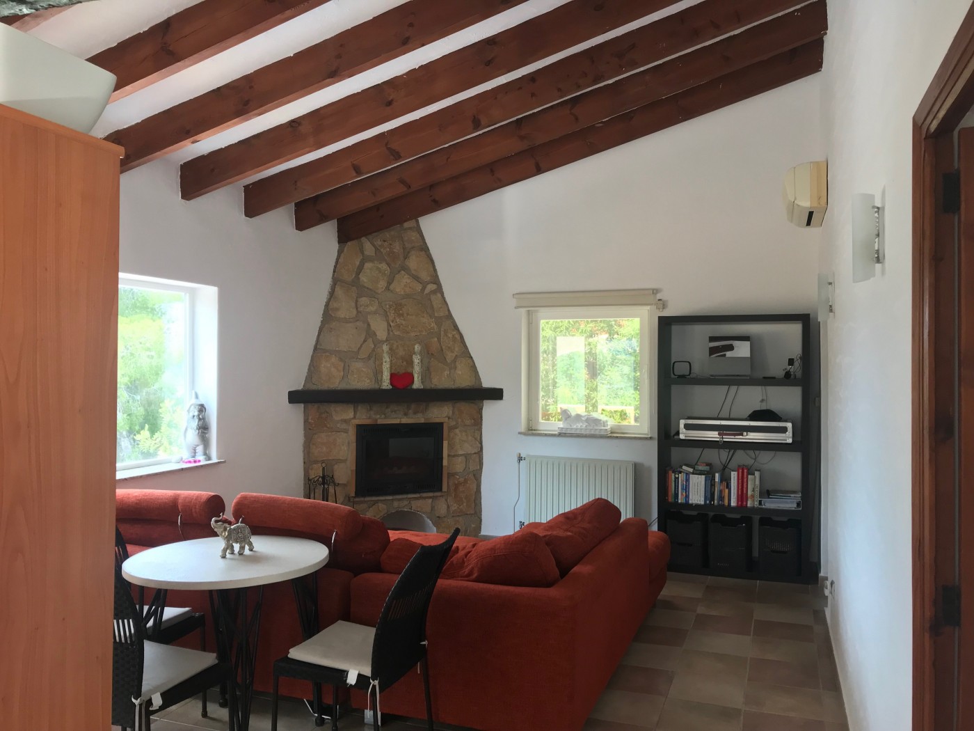 On the ground floor you will find a cozy, romantic living room with a fireplace that connects to the