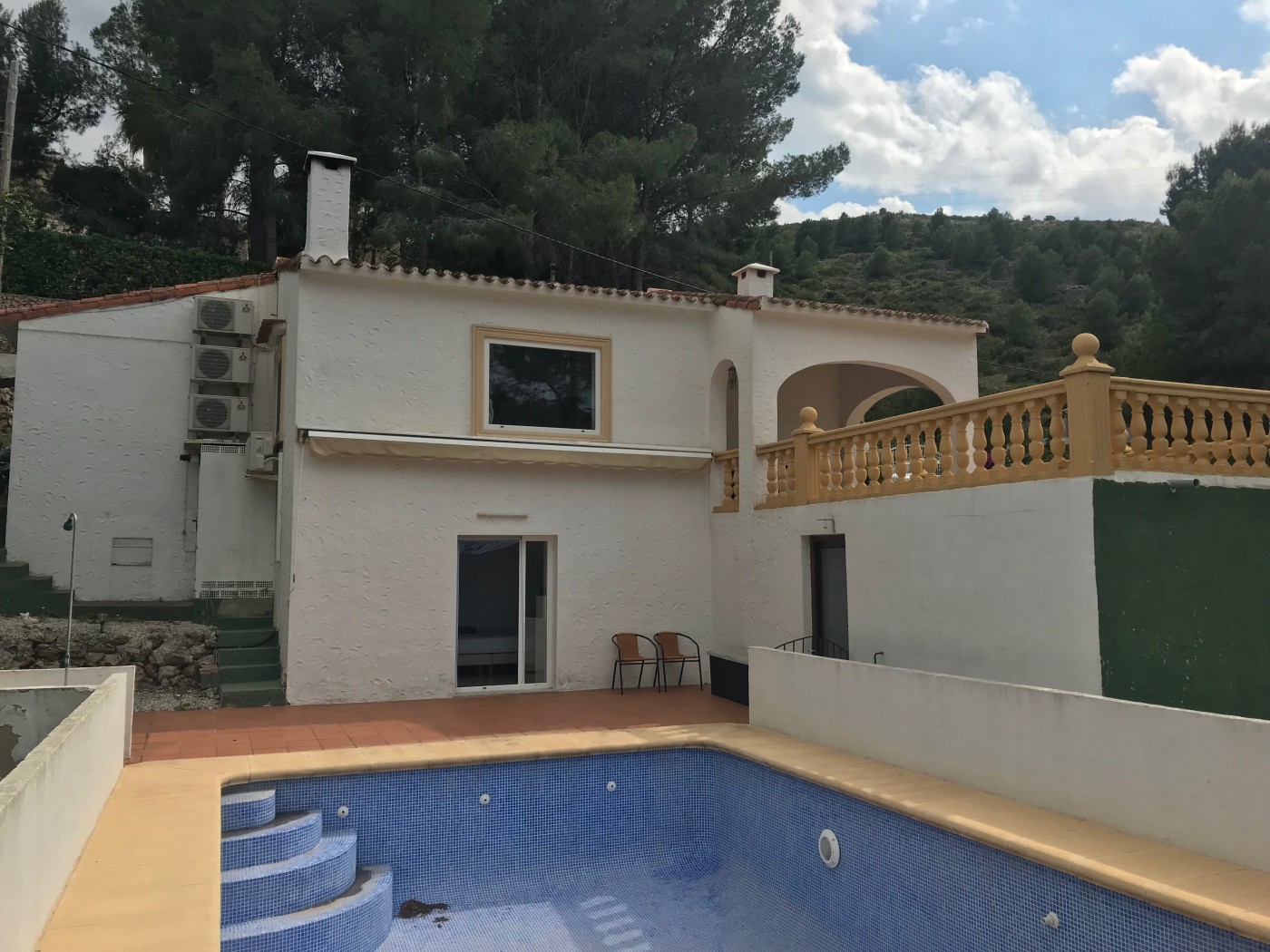The windows have been renewed with double glazing. Below it is the garage and a guest apartment with