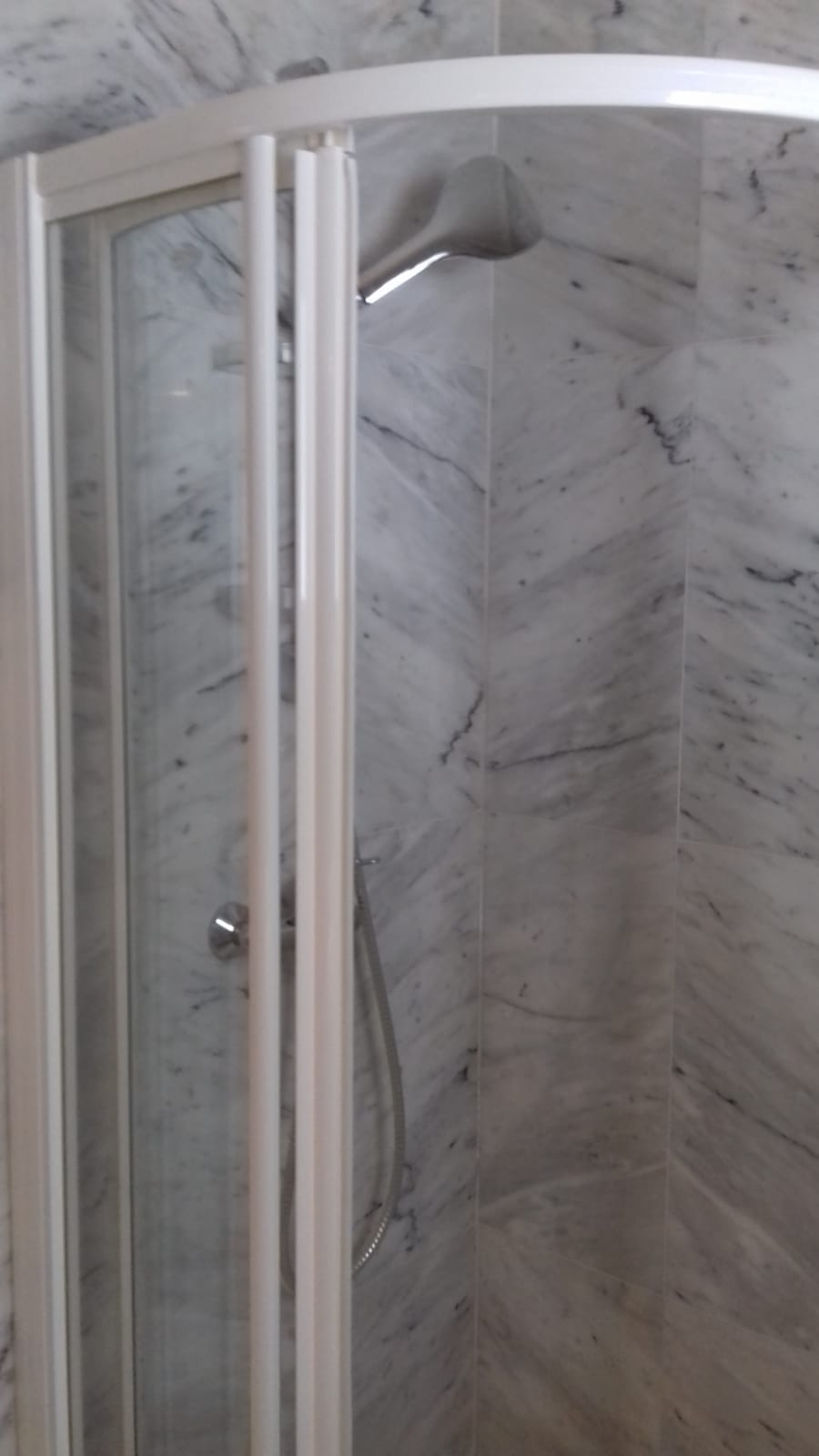 Modernized restroom and bath with the finest marble slabs from Carrara, Florence.