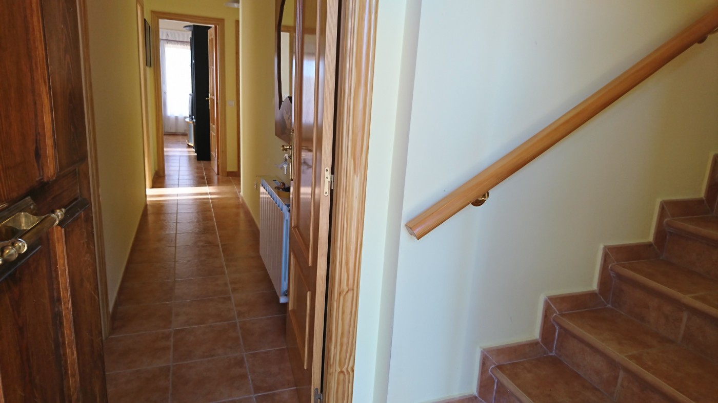Detached house with garden, garage and view to Sierra de Gredos. Located in the town of Navarredonda de Gredos, this detached house stands on a plot of 363m2, of which about 256m2 is the garden surrounding the building and about 107m2 is occupied by the building itself, which comprises a 272m2 construction. The ground floor, which rises at street level, has 108m2 built (including terrace overlooking the mountains), the 1st floor has 58m2 built and the basement (garage and fourth facilities) has 1008m2 built. The main house on the ground floor is distributed into entrance hall, kitchen, living / dining room with wood stove, 3 bedrooms and 1 bathroom. Heating and hot water is through individual diesel boiler. The 1st floor could be used for rental or holiday housing, since it comprises a second house with its own access, and that´s been distributed into living/dining room with kitchenette, 2 bedrooms and 1 bathroom. Heating and hot water is also by means of diesel boiler. In the basement there is the garage, boiler room and storage room.