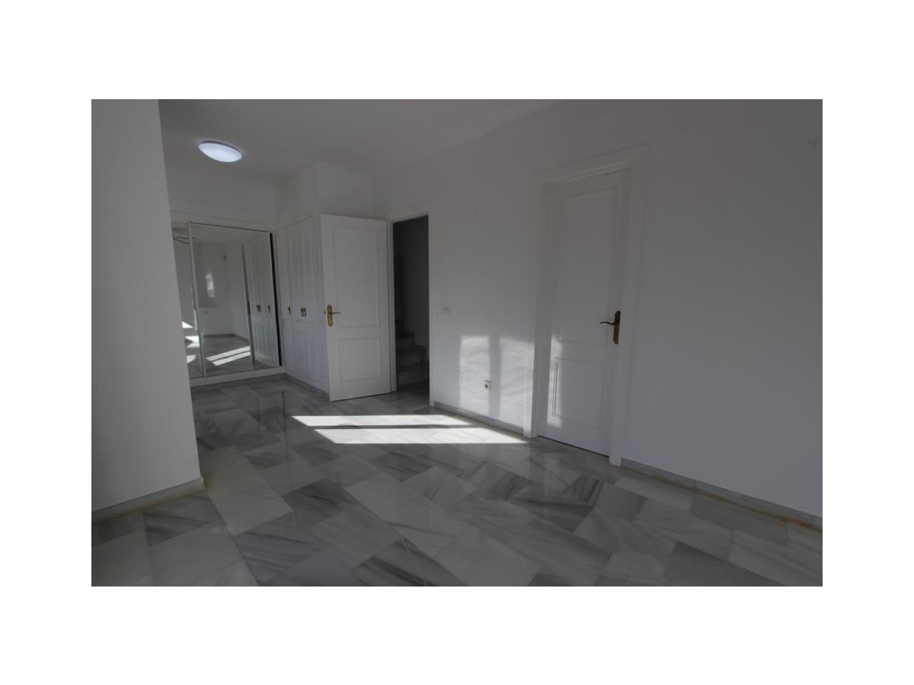 Superb 3 bed south facing townhouse On 3 floors. Front line golf La te min walk to the beach. 2 ensuite bathrooms( one newly renovated) , ground floor guest toilet. Fully fitted kitchen. Newly painted inside and marble floors optic te off road covered car park space. Small garage annexed to property for storage or nal gardens and pool.
