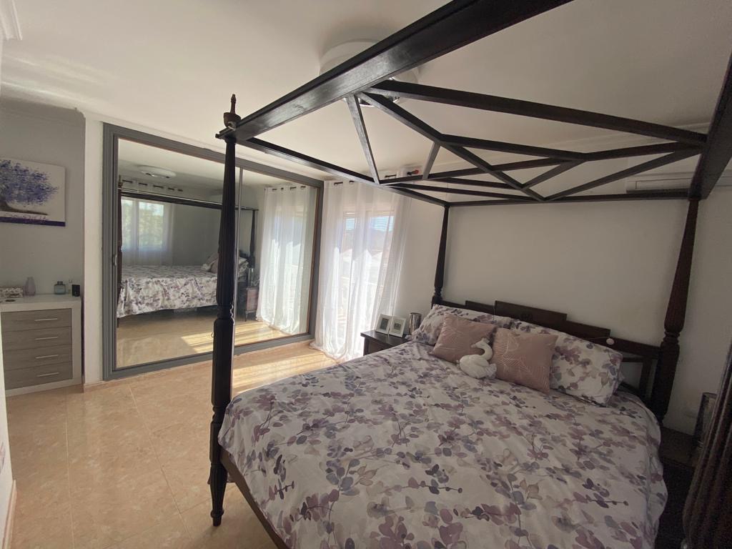 Stunning 4 Bedroom Villa set in a fully landscaped 10500 sq m plot, entrance by private rd through electronic gate. Driveway is approx 600m long and lined with mature Palm Trees and conifers. House has a large lounge with patio doors to fully enclosed sun terrace with door to pool area. There is a huge huge modern kitchen, utility room, 2 x Garages, upstairs has a cinema/sunroom with glass sliding doors/wall to open up the whole area, 3 balconies. the house has 3 bathrooms all with showers, one ensuite in master bedroom, one main family with bath and one upstairs for upstairs bedroom. The house has Aircon which also does warm air in master bedroom, upstairs bedroom and in the lounge, the house also has a full oil fired central heating system (1000l tank) with radiators in every room. There is and expansive pool area with an outside fully enclosed kitchen with fully fitted barbecue with chimney, glass sliding wall to open up thw area with new condition full size pool table the kitchen has power and water. there is a poolside shower and toilet with store room. The gardens have a computer controlled irrigation system, the saltwater pool has a similar system for controlling the PH levels etc and there is a pool robot for cleaning the pool. The orhcard has a variety of mature fruit trees, cherry, plum, pomegranete, olive, pear and apple. The plot is very private surrounded by more than 2500 conifers that are all in excess of 15ft high, 25 minutes drive from alicante airport and approx 25 minutes to a variety of beaches. Included in the price is the furniture and an Audi A6 Allroad in excellent condition which has just been serviced.