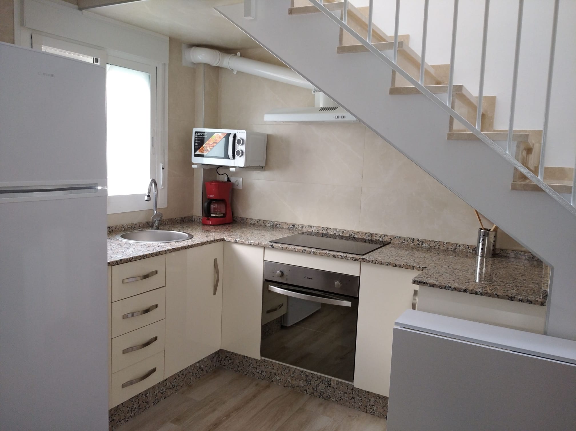 The house has two floors that in total add up to 50 m2, on the first floor we have a kitchen and living room