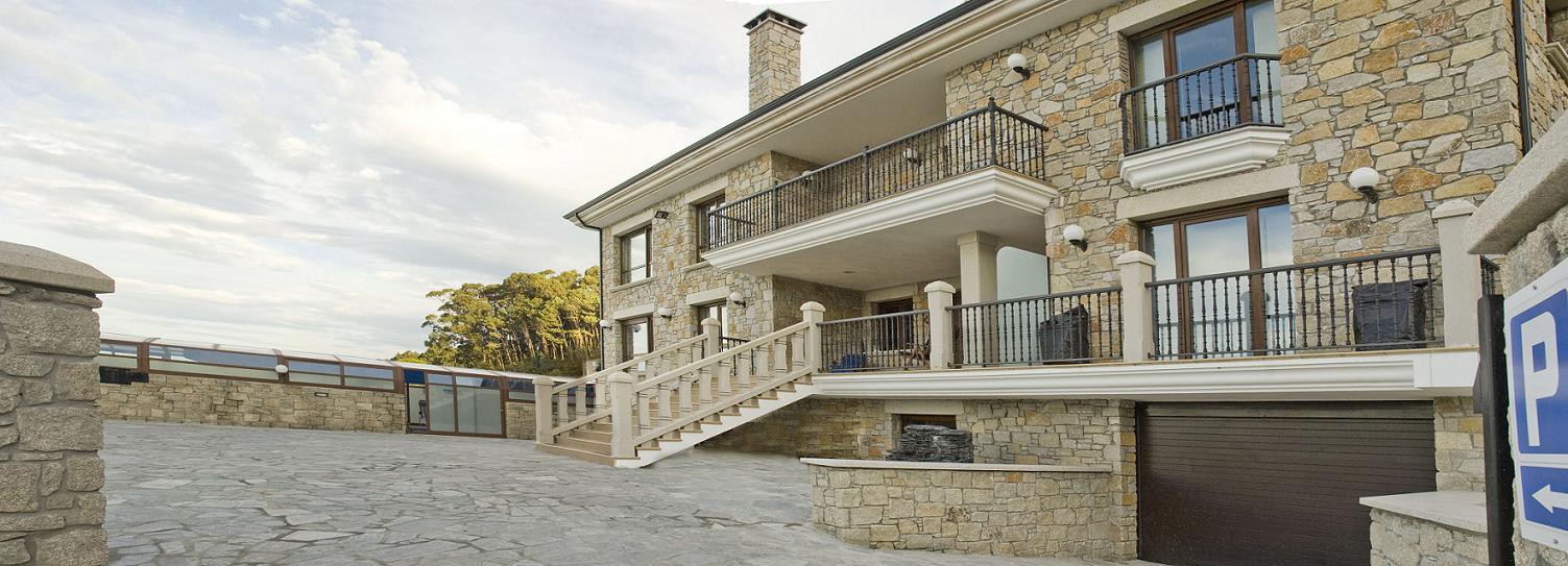 Natural stone breakwater around the house 30 meters long and 0 to 4.5 meters