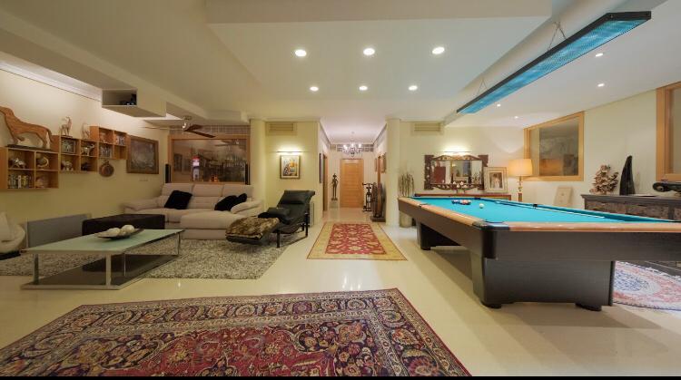120m2 with billiards, cinema, gym and wine cellar. One double bedroom, one 50m2 bedroom, large living