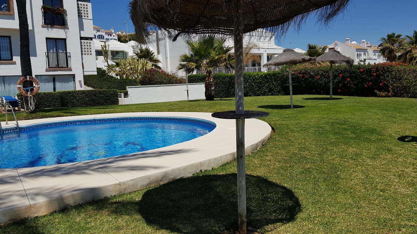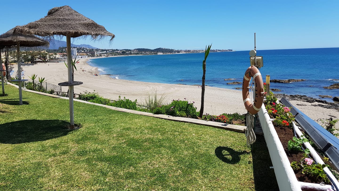 Large groundfloor apartment by the beach in la Cala de Mijas (front Beach), with private entrance, parking, terrace. Fully equipped at walking distance from city center. Very quite area private pool for the residence, Jacuzzi, etc...