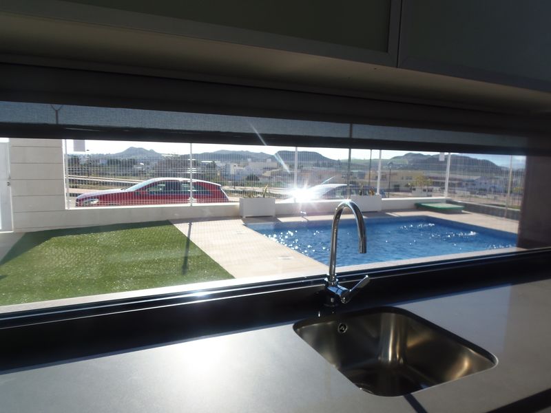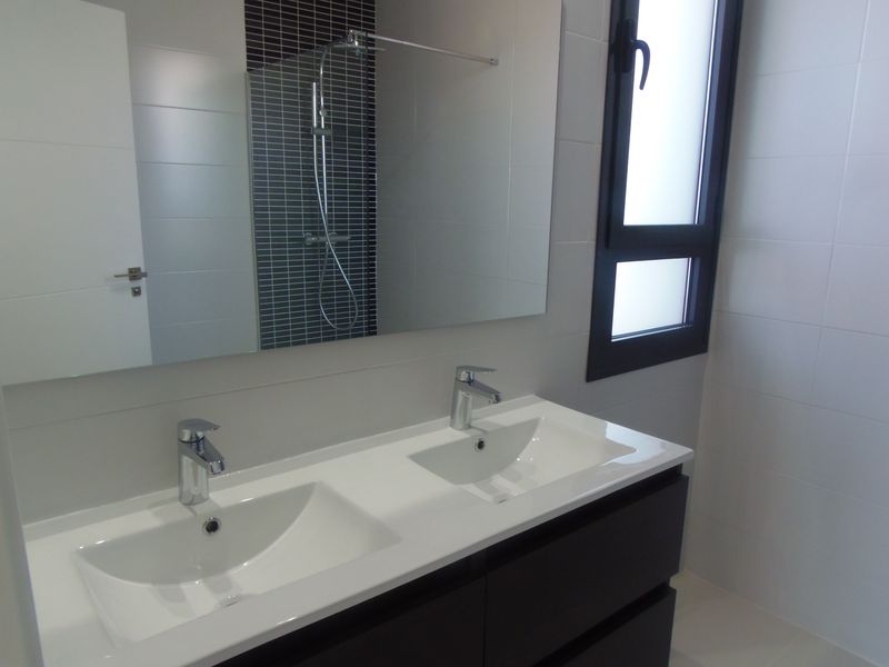 Functional houses with avant garde style with a comfortable layout consist of 3 double bedrooms and one of them en suite fitted wardrobes and large windows with plenty of light in all bedrooms. Modern and functional kitchen with big storage capacity. Large living/dining room surrounded by large windows and doors with access to the garden and pool.